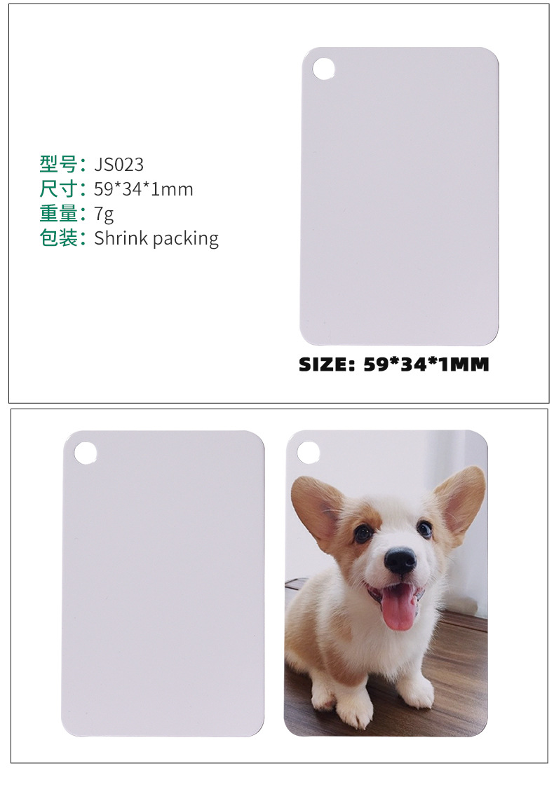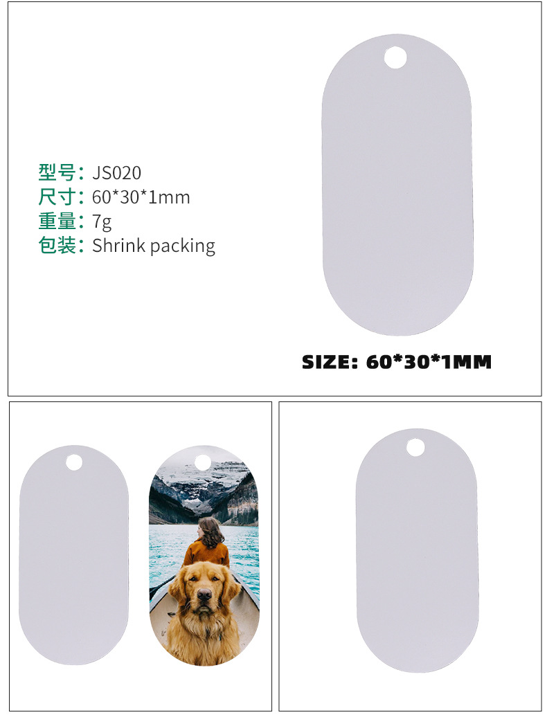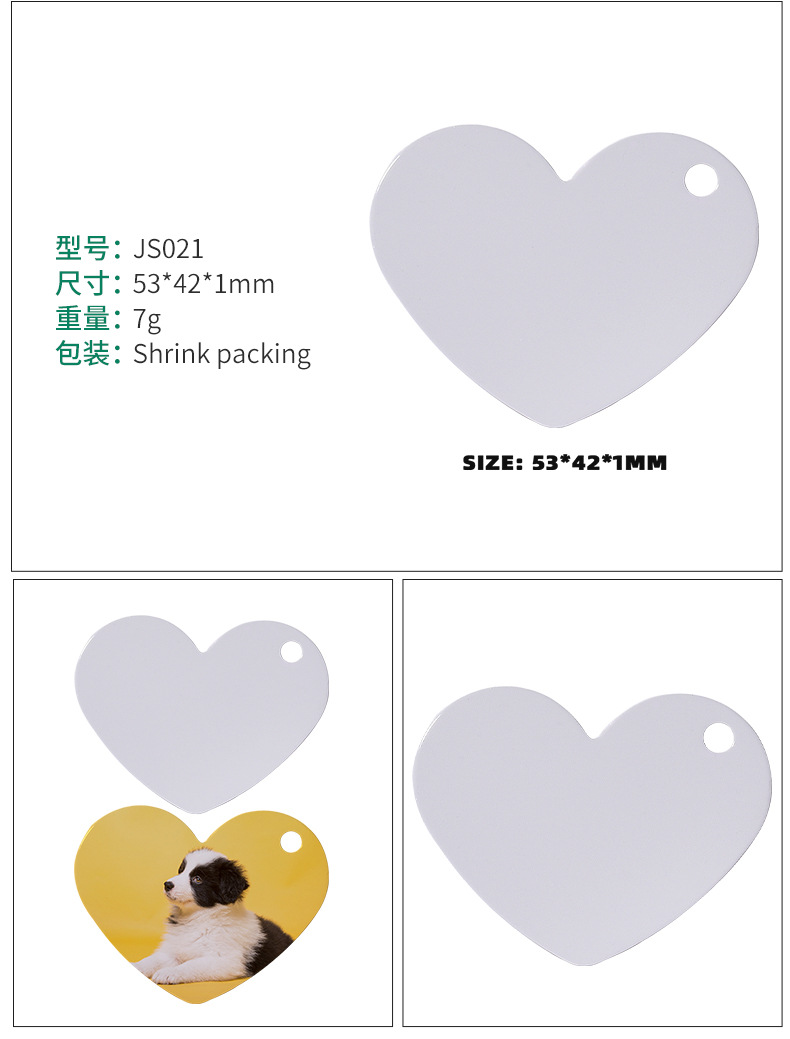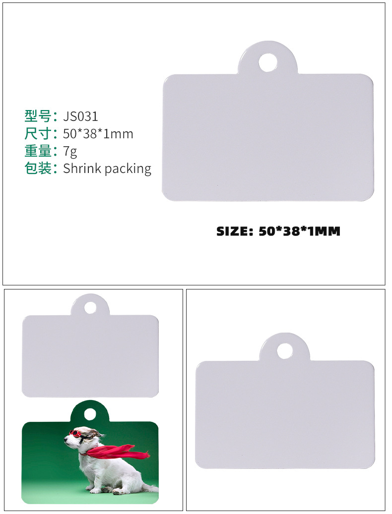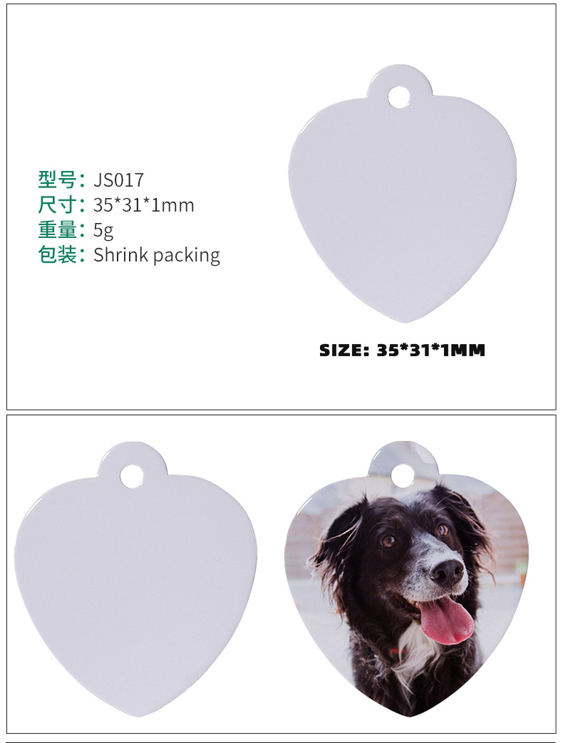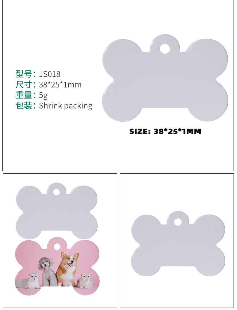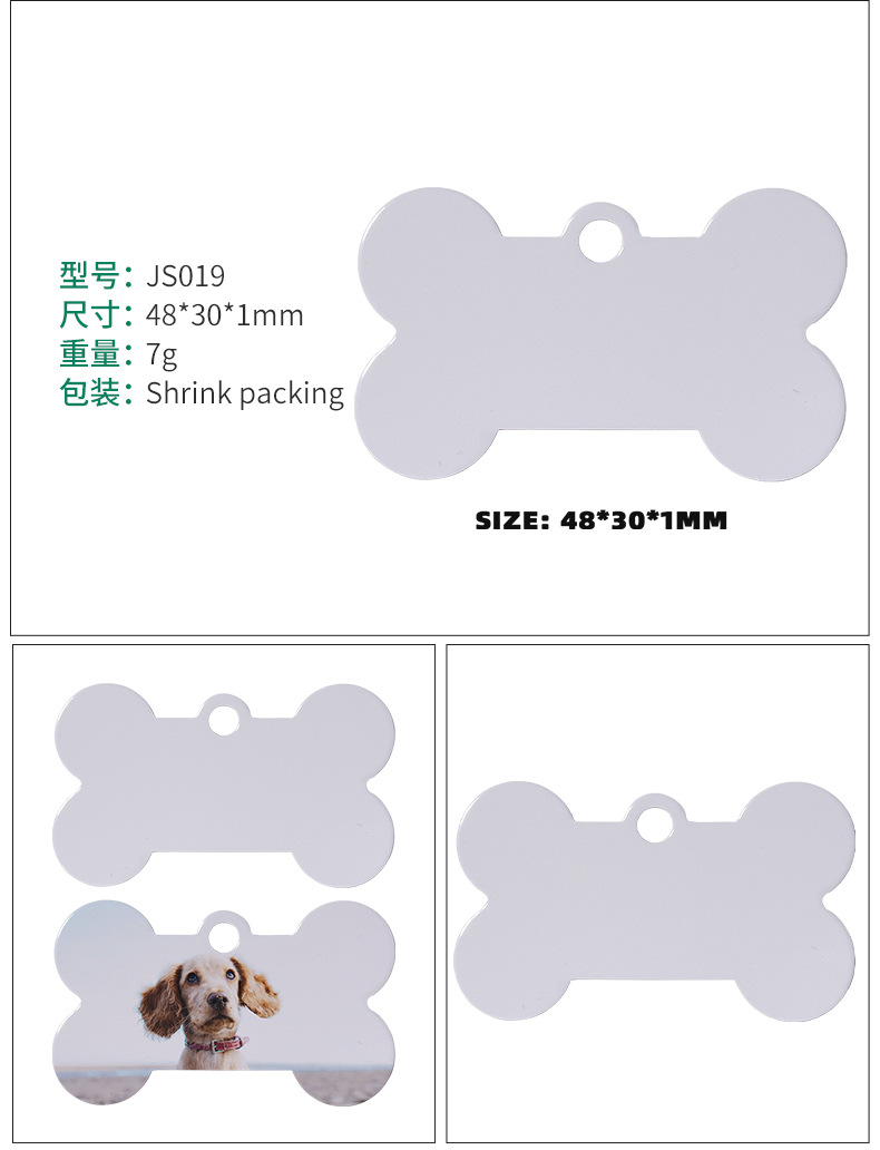 Amazon transfronterizo en blanco impresión de transferencia térmica de aluminio de doble cara tarjeta de perro colgante de sublimación caliente hueso colgante tarjeta de perro de mascota