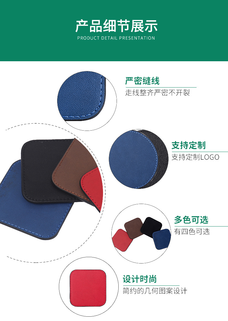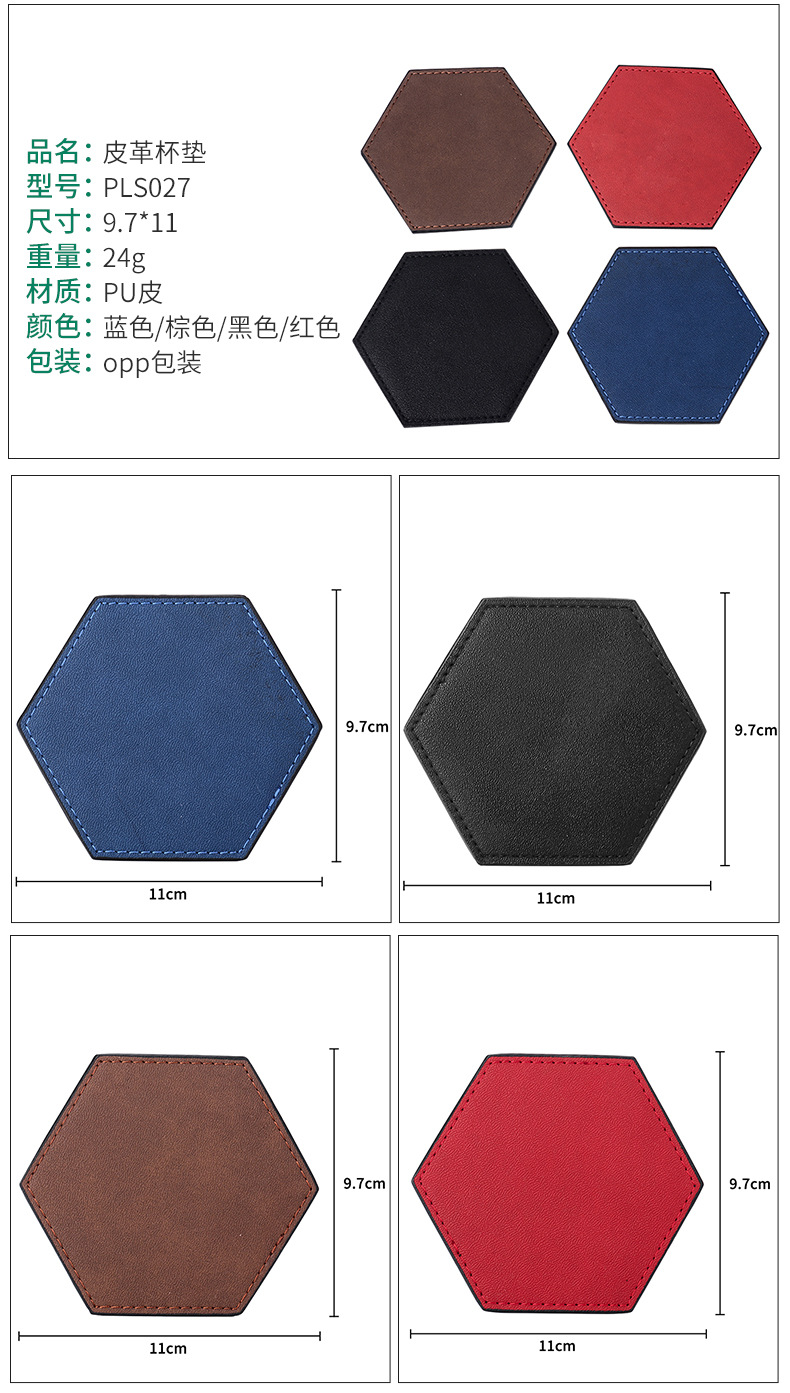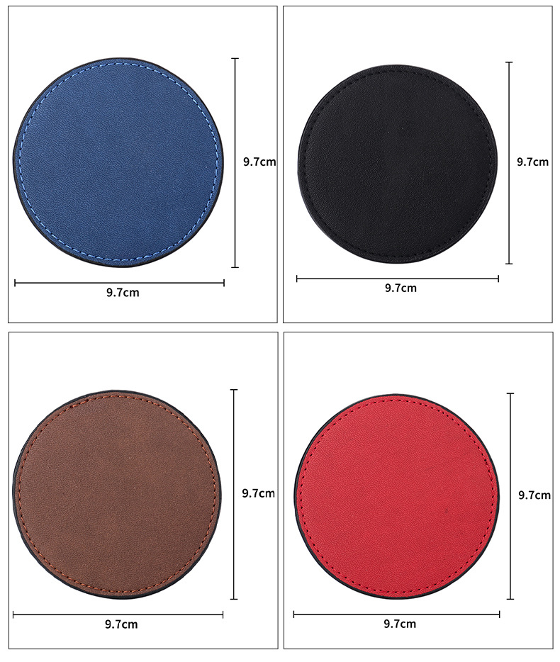Inventario de venta caliente almohadilla de taza de té multicolor placa de orificio láser logotipo simple antideslizante aislamiento térmico almohadilla de taza de piel PU