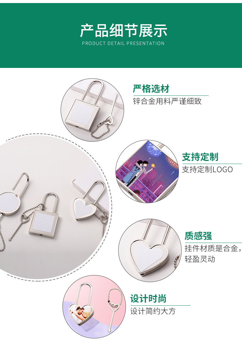 Transfronterizo TEMU en blanco de transferencia térmica DIY cabeza de cerradura amante para enviar la función de cajón amante puede abrir la cerradura de llave