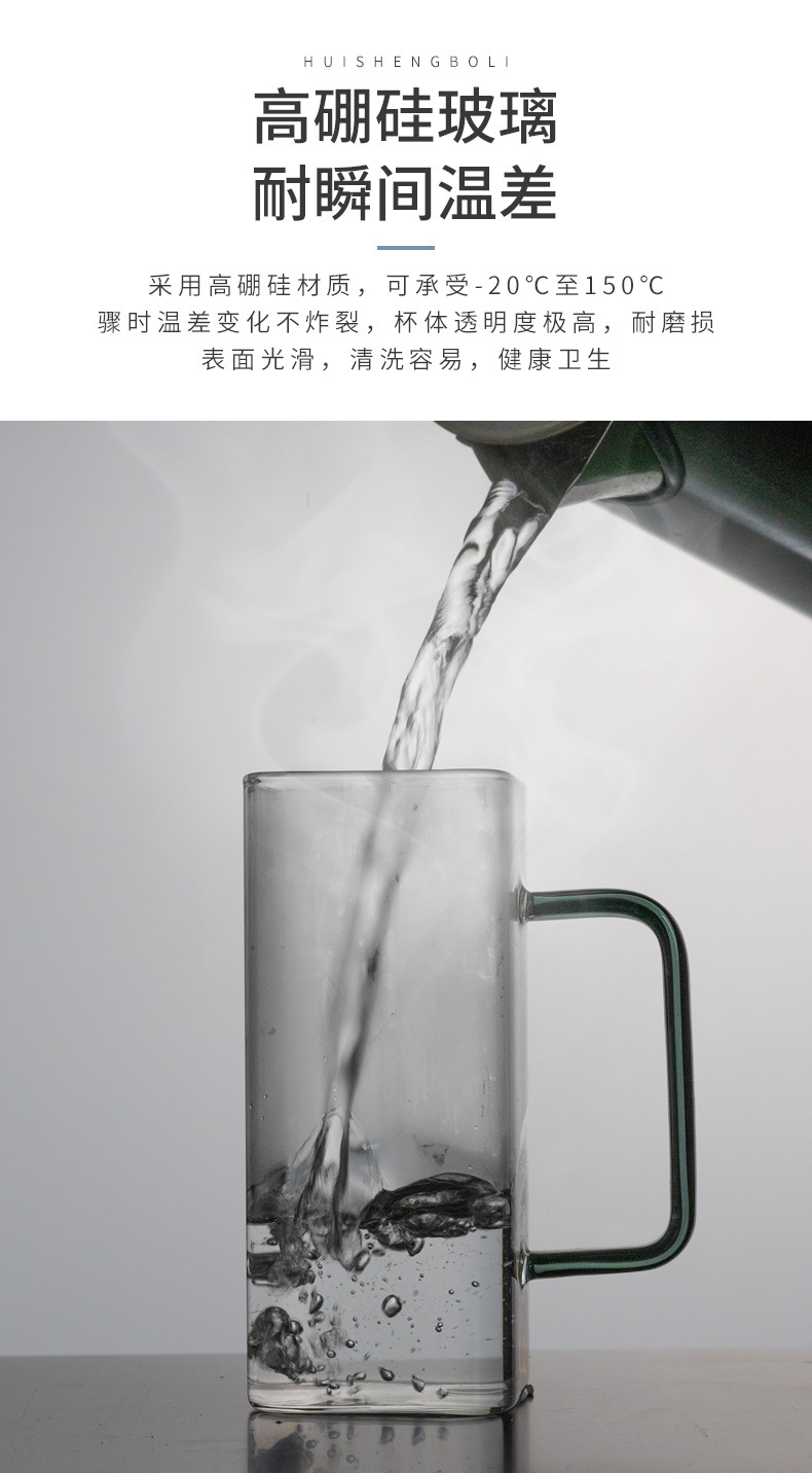 Taza de vidrio Taza de agua con mango para el hogar Taza de café resistente a altas temperaturas Taza de té resistente al calor con alto borosilicato Taza de té verde