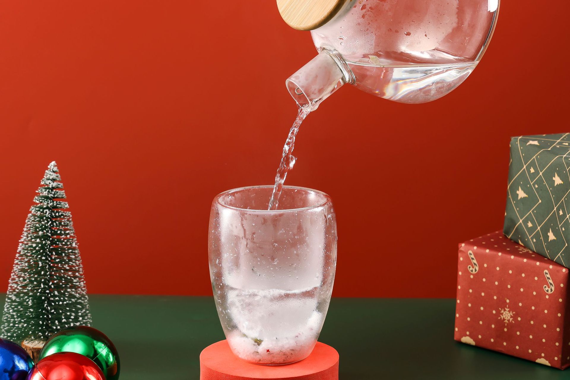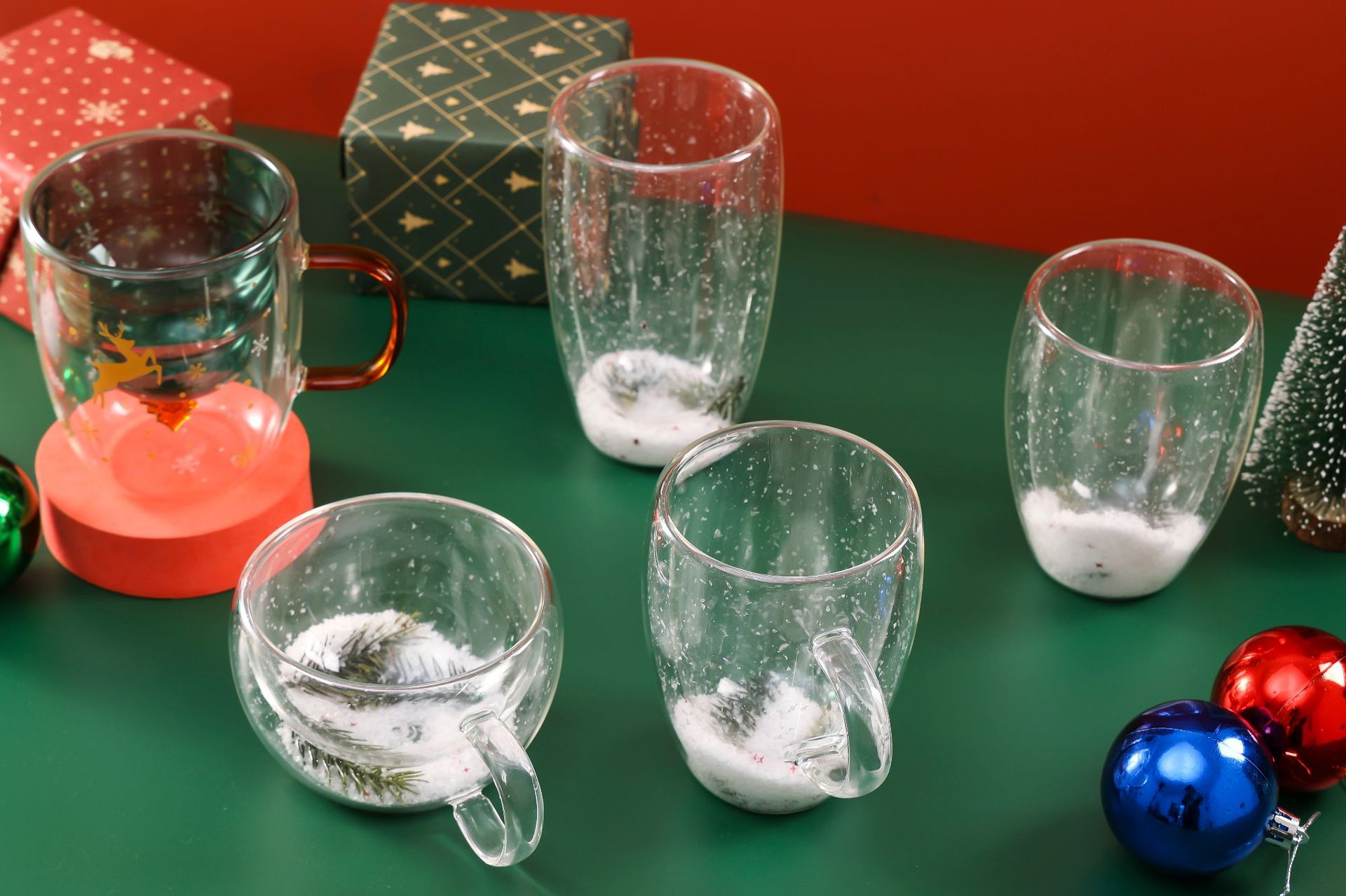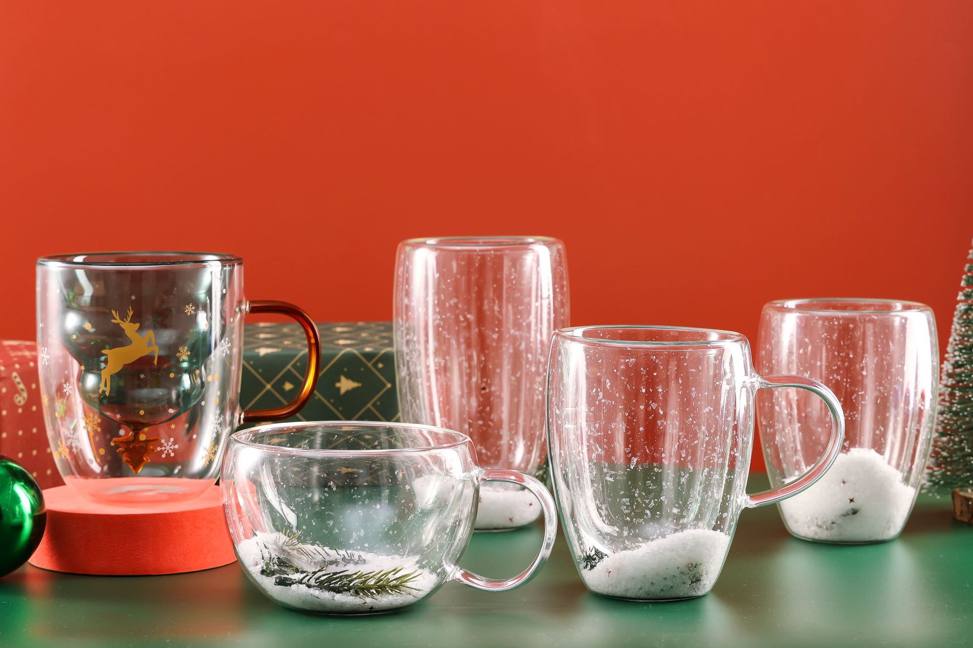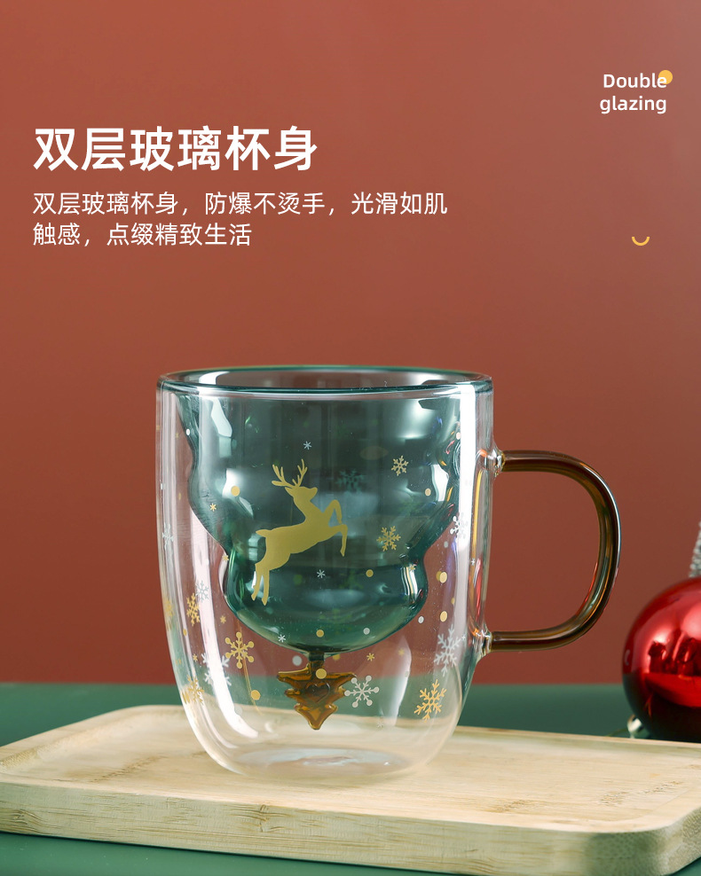 Taza de Navidad personalizada creativa de doble capa de vidrio resistente al calor taza de agua doméstica de alto valor de regalo de vacaciones taza de café de leche