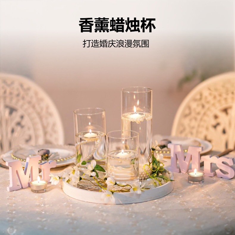 Taza de cera de bananas, vidrio transparente, taza vacía, vela transfronteriza, latas de vidrio, tres conjuntos de velas de mesa de boda, cubierta de viento