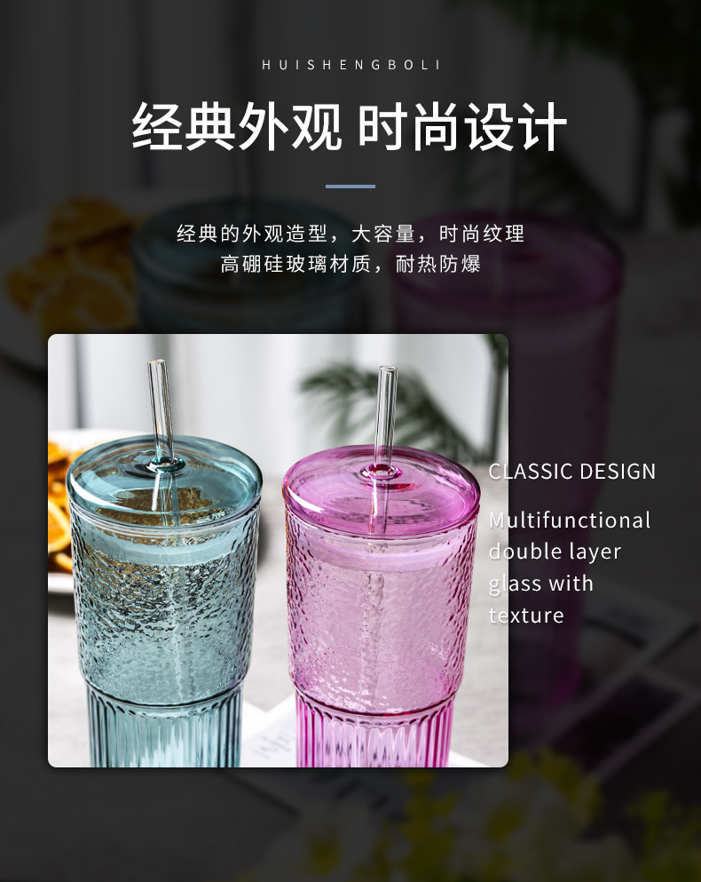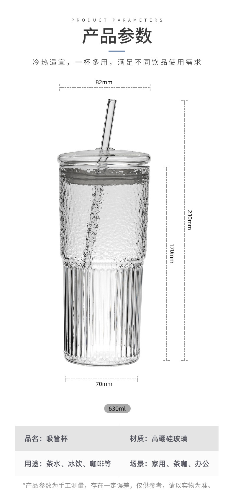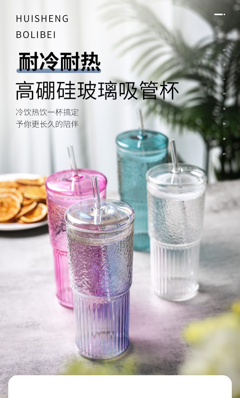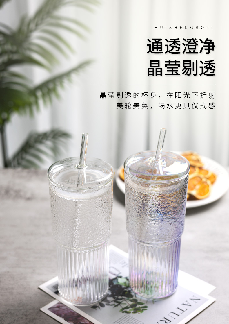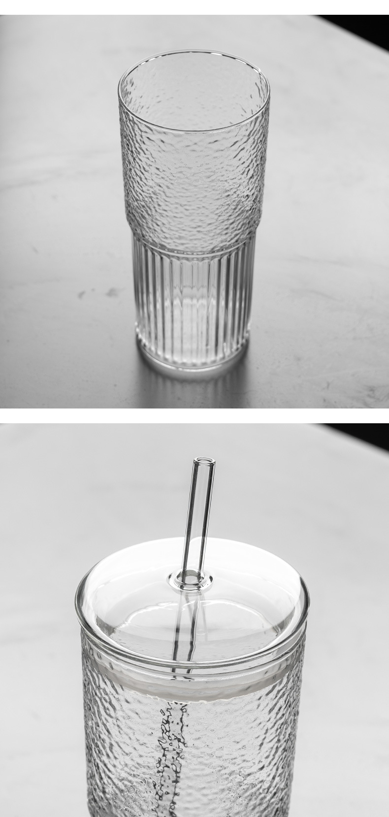Taza de paja de vidrio Vaso de vidrio de alto valor con tapa Jugo de verano de gran capacidad Vaso de bebida fría de celebridades de Internet Regalo de graduación