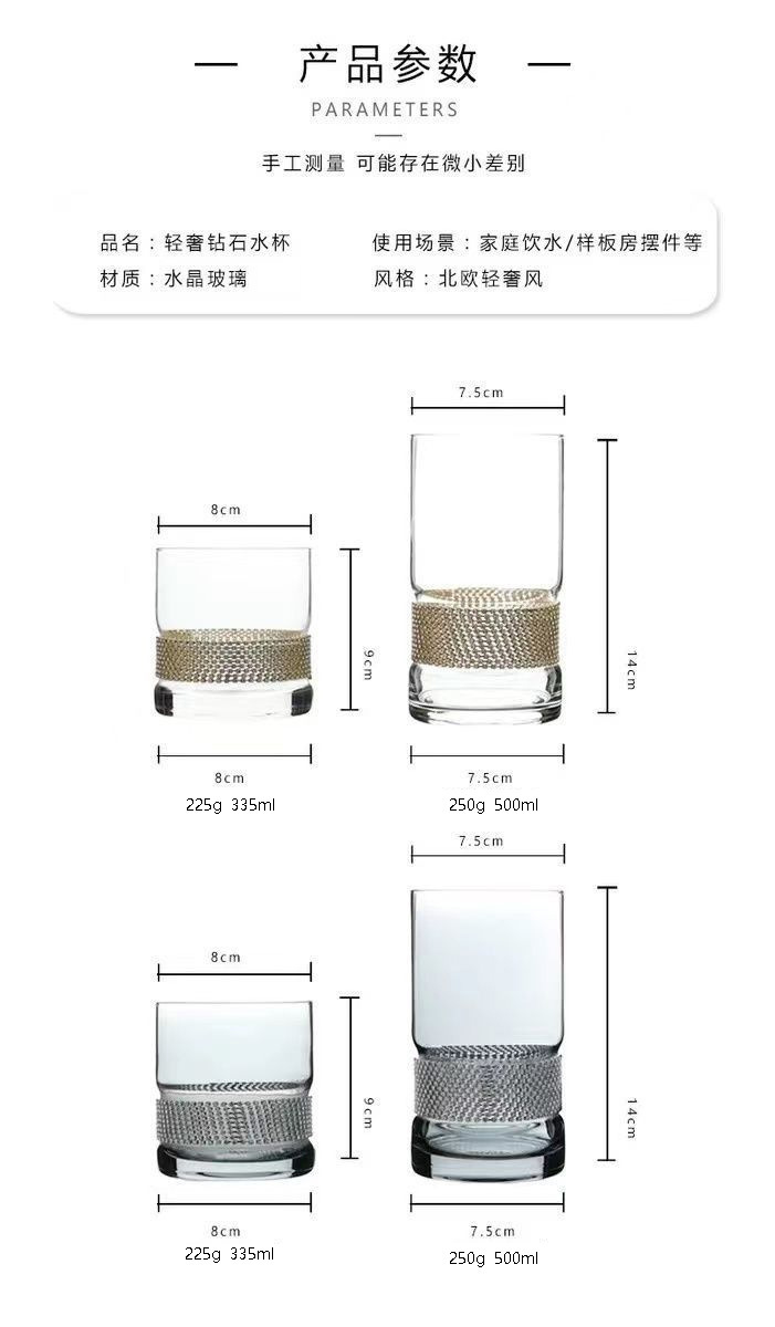 Tazas de cristal de diamante de hadas de vidrio transparente tazas de whisky tazas de diamante tazas multicolores tazas de vidrio