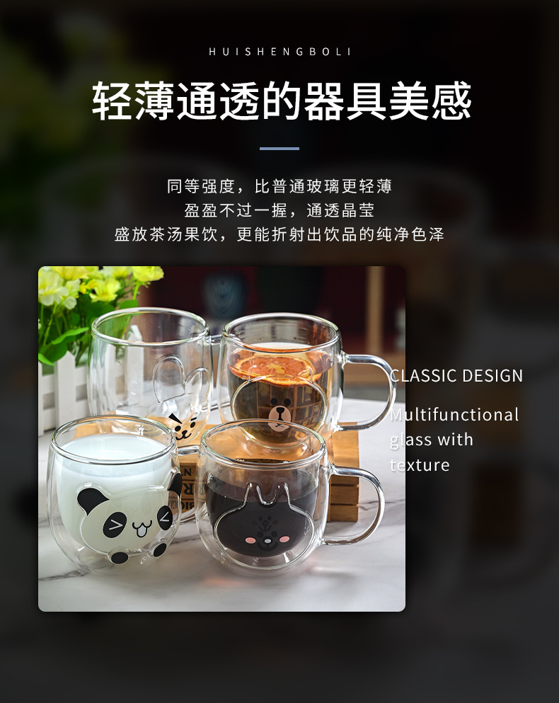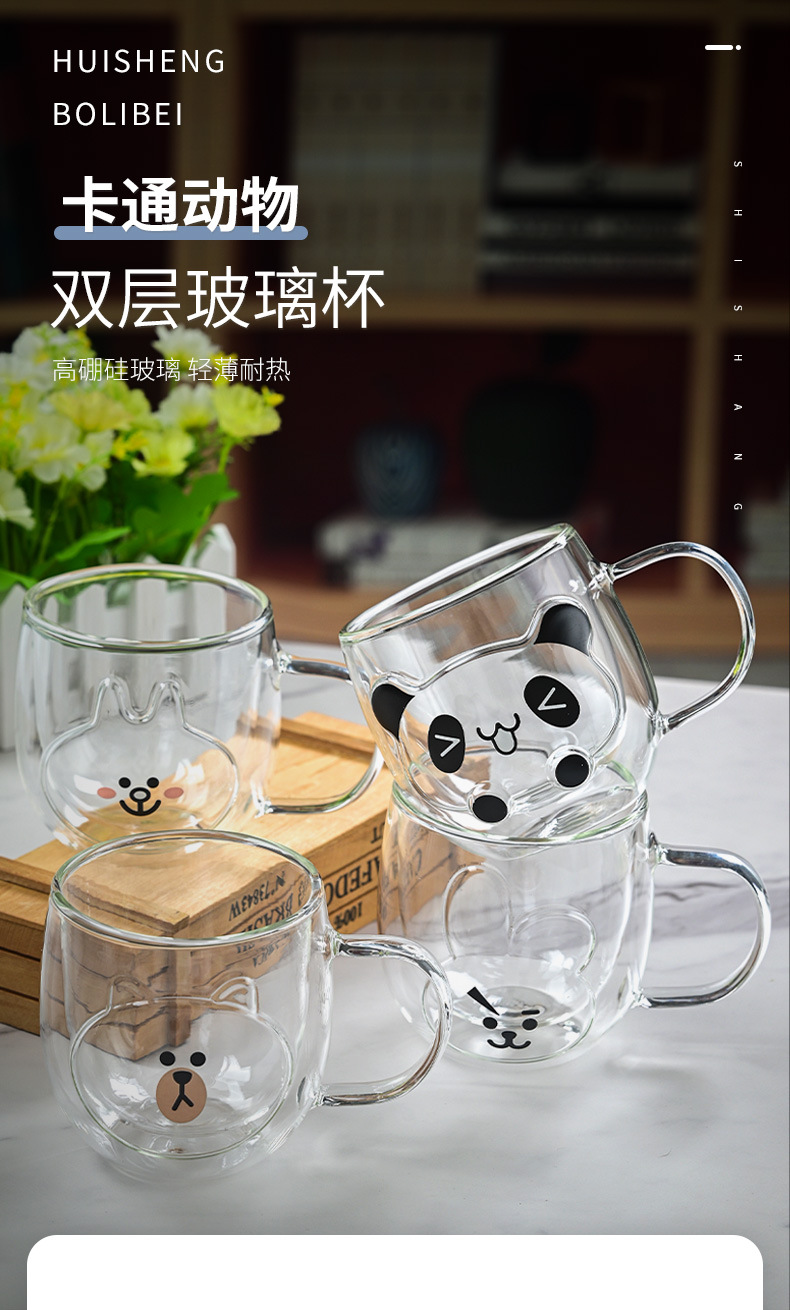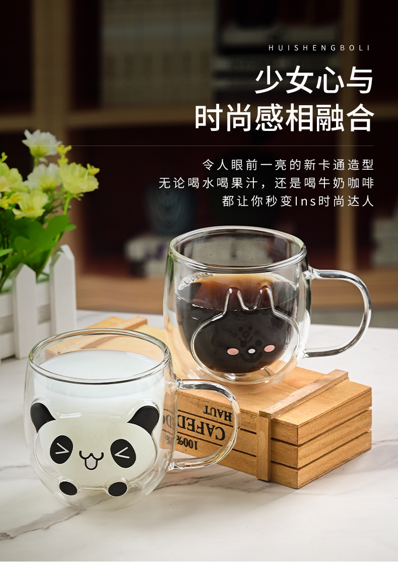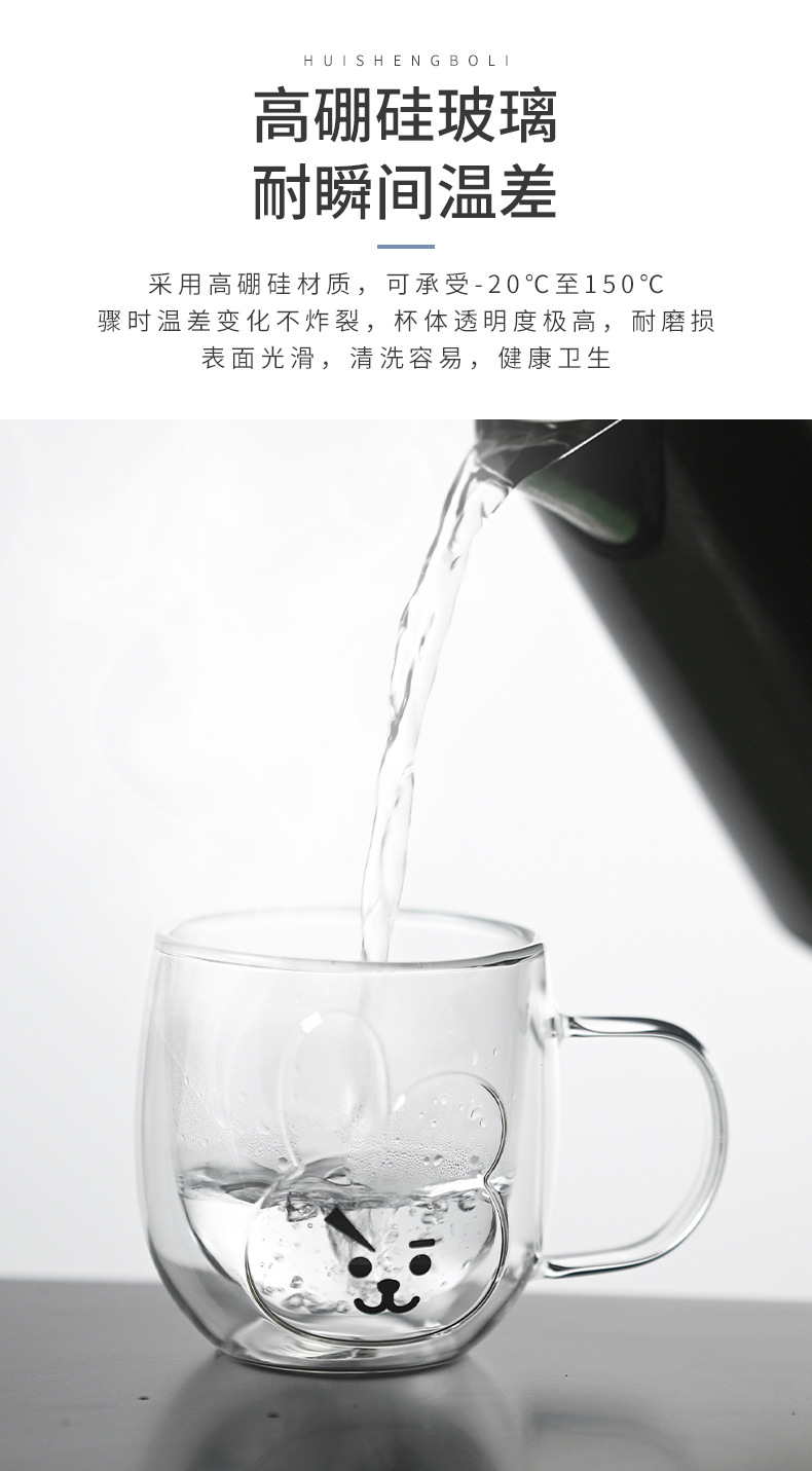 Hermosas tazas de vidrio de doble capa, tazas de menú aisladas de alto silicio con mango, tazas de agua de oficina doméstica, tazas de desayuno, tazas de café