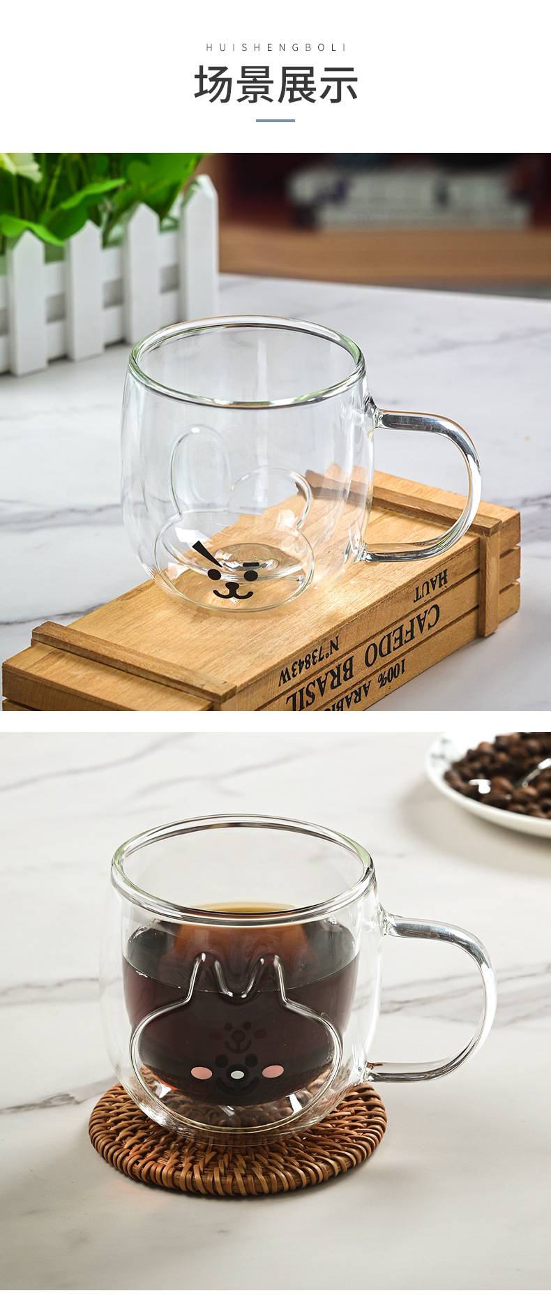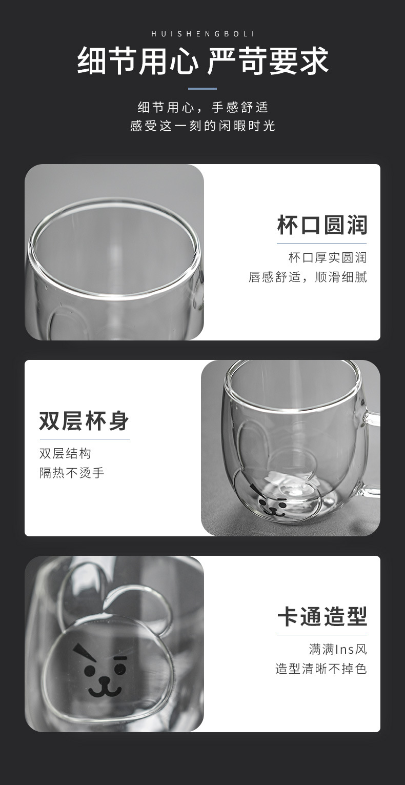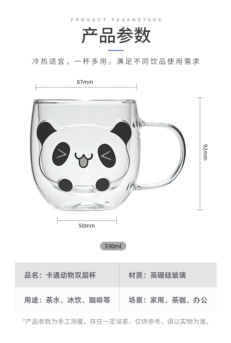 Hermosas tazas de vidrio de doble capa, tazas de menú aisladas de alto silicio con mango, tazas de agua de oficina doméstica, tazas de desayuno, tazas de café