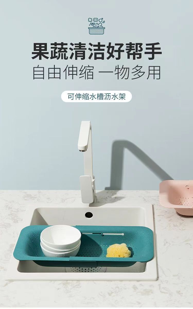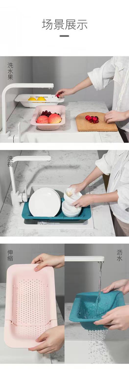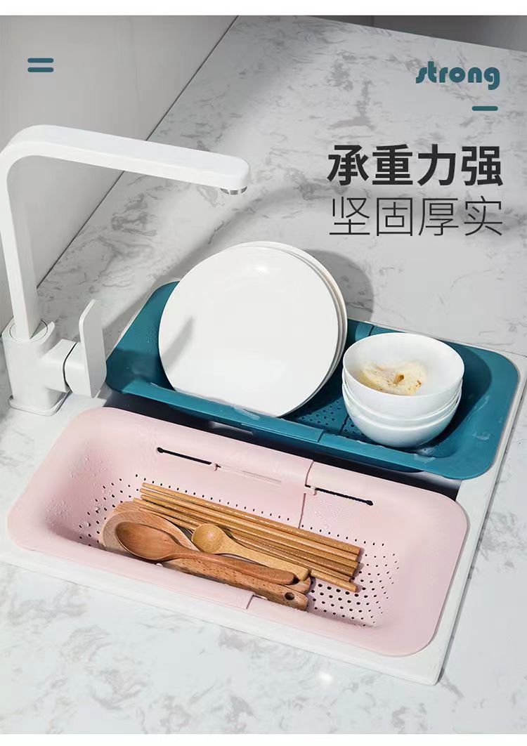Cocina fregadero telescópico cesto de drenaje cesto de limpieza de frutas y verduras multifuncional platos de drenaje de platos de platos de plástico piscina lavabo de verduras