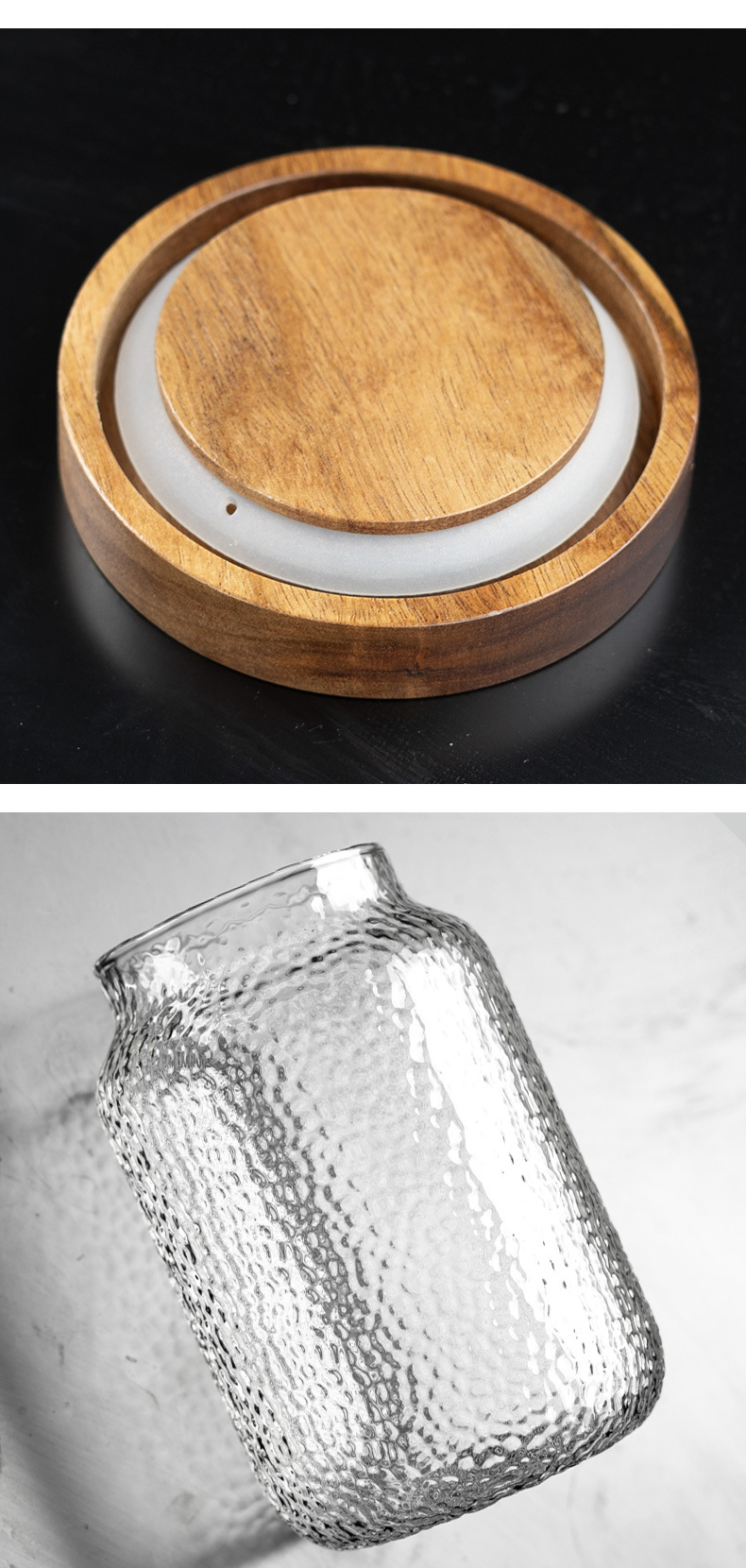Creativo martillo de madera Acacia almacenamiento tanque de cocina transparente hogar almacenar granos de café té vidrio sellado tanque
