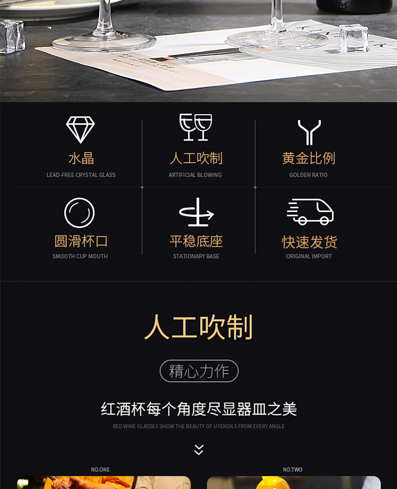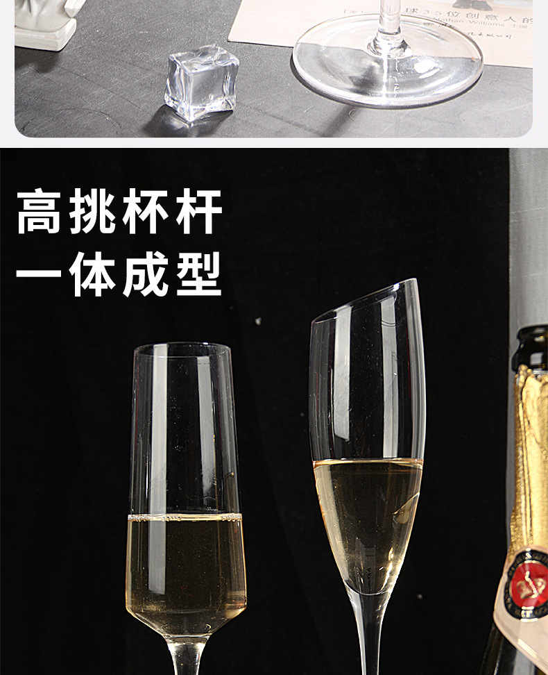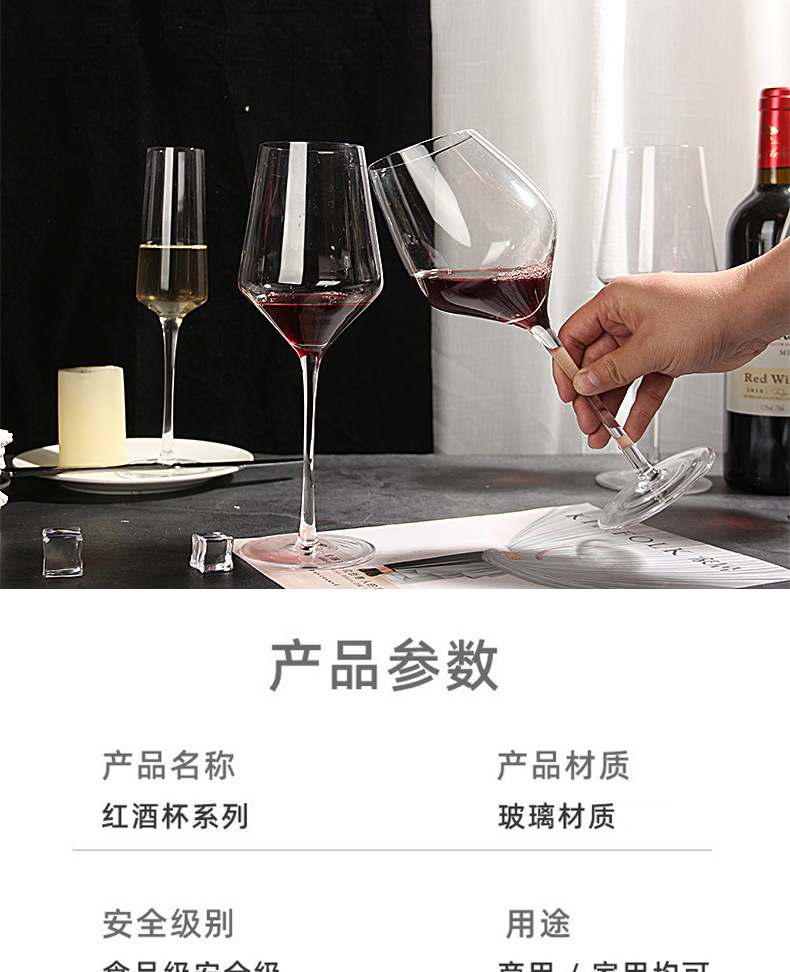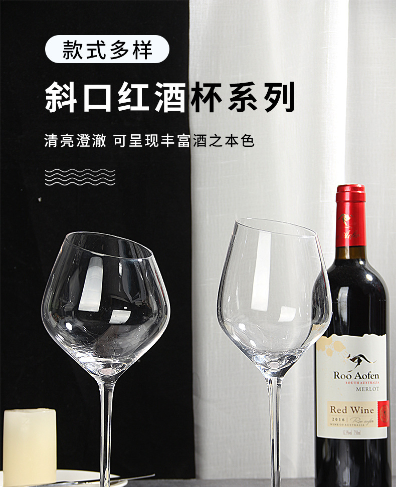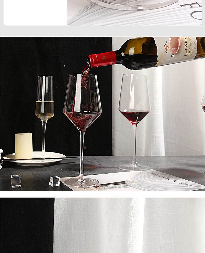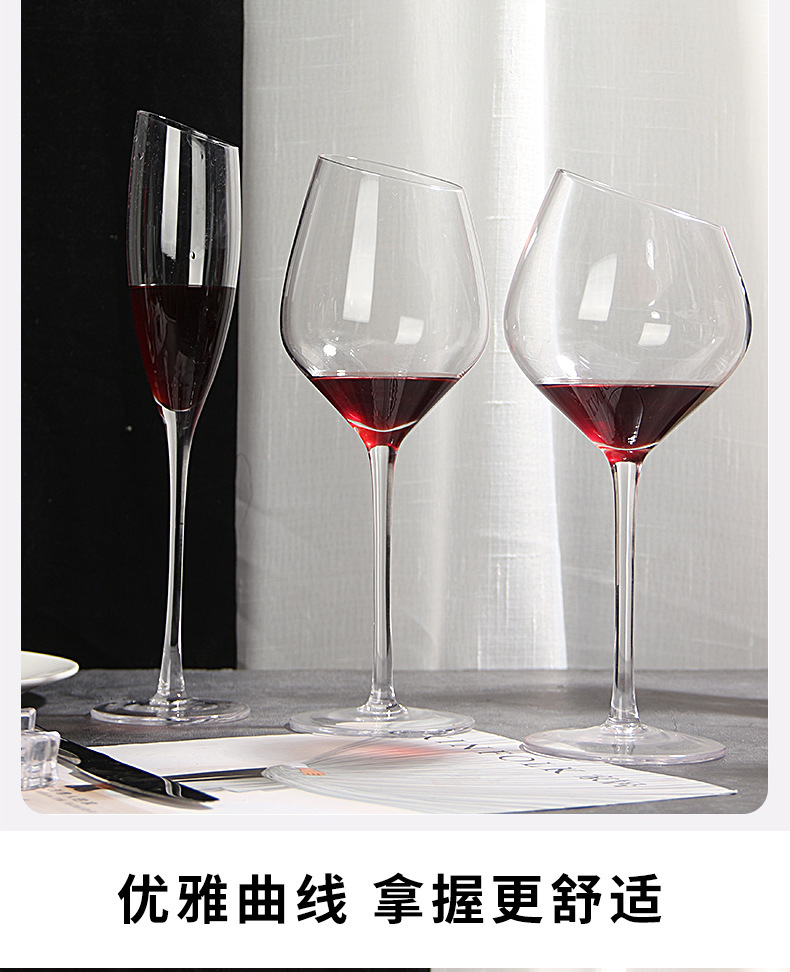 Tazas de vidrio inclinadas de alto valor de visualización casera de cristal borgoña tazas de pie alto tazas de vino de boca plana sensación de alto nivel