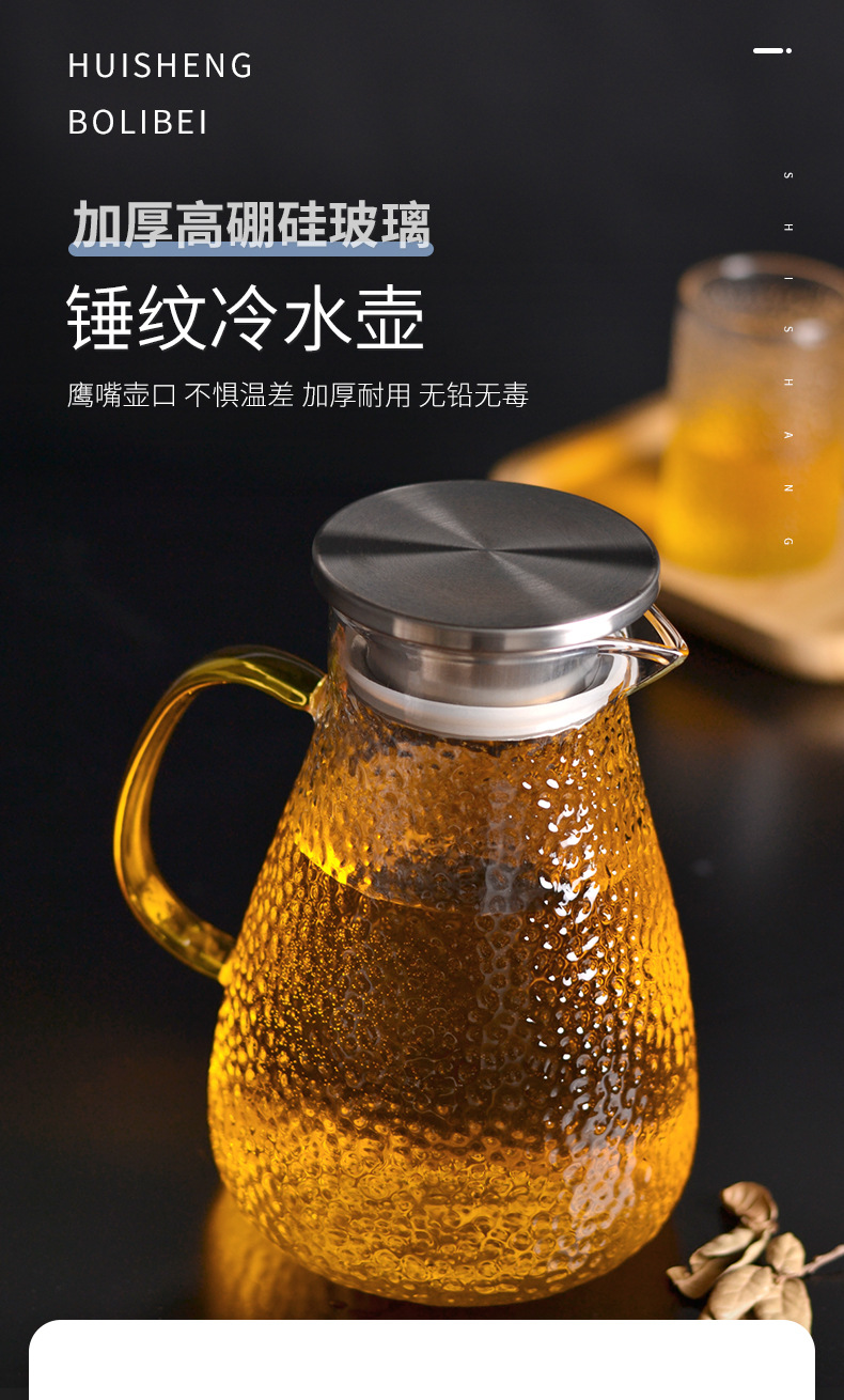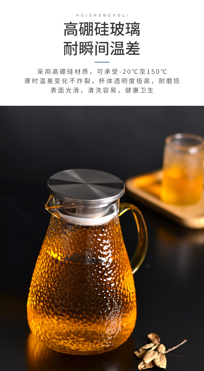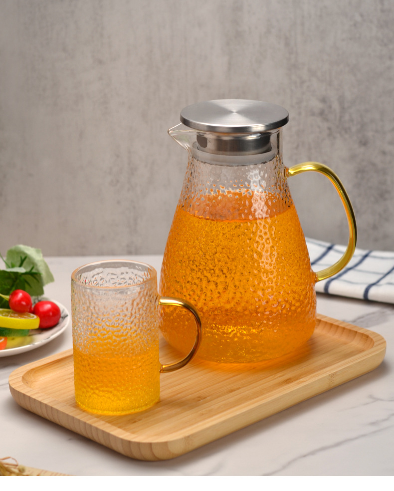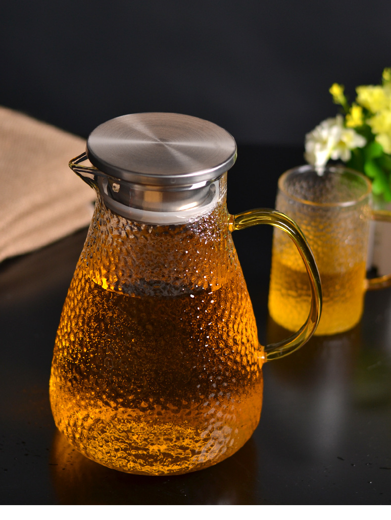 Botella de agua fría martillo de vidrio patrón hervidor de agua verano hogar simple resistente a altas temperaturas gran capacidad frío blanco refrigerador abierto botella de agua fría