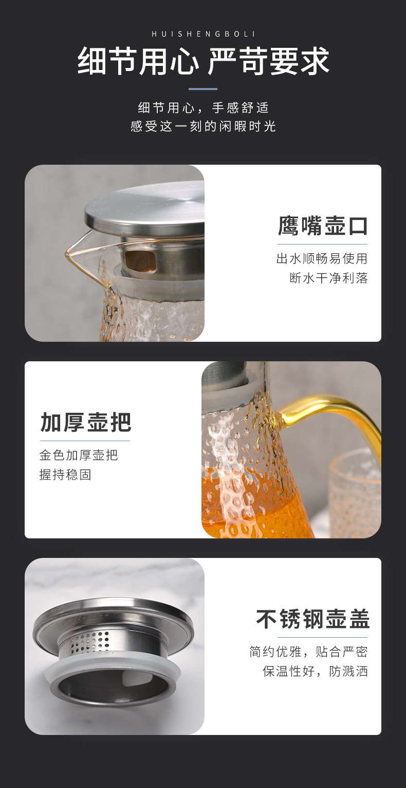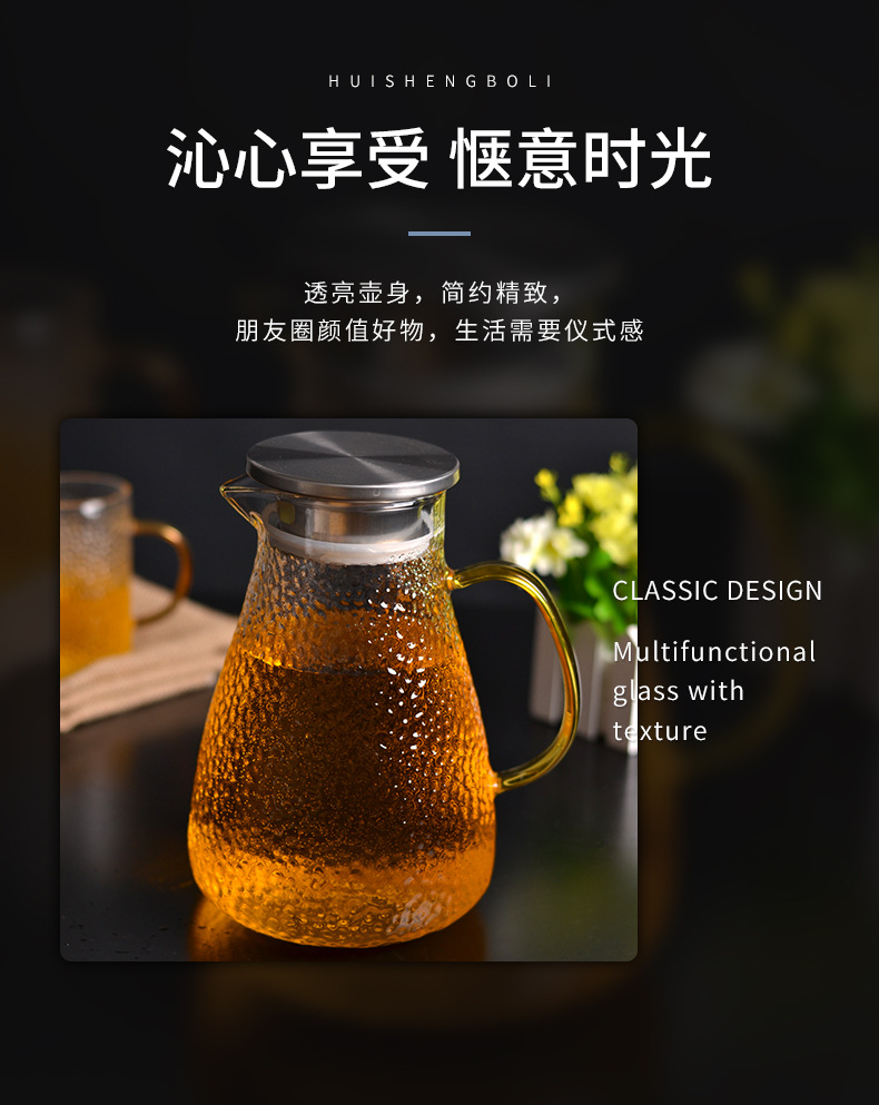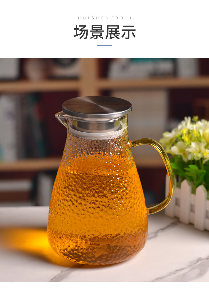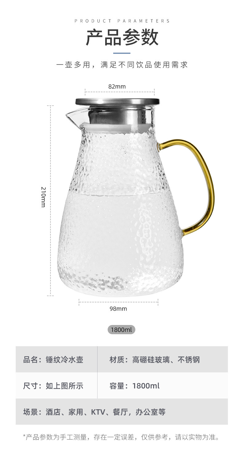 Botella de agua fría martillo de vidrio patrón hervidor de agua verano hogar simple resistente a altas temperaturas gran capacidad frío blanco refrigerador abierto botella de agua fría