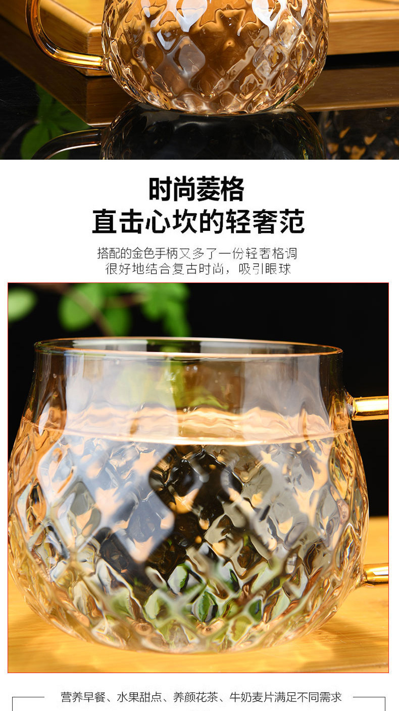 hermosa taza de vidrio de diamante casera de alto valor de agua, taza de desayuno, taza de leche, taza de menú, sensación de alto nivel