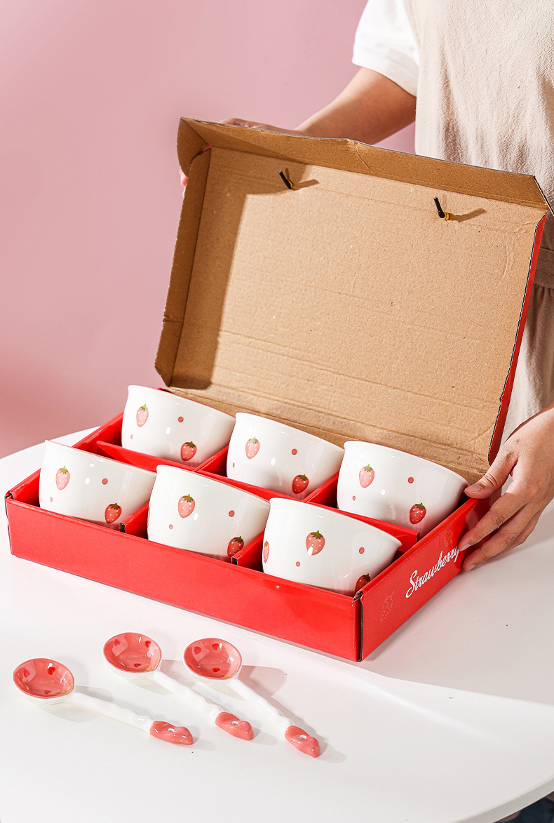 [Familia de seis] 6 cuencos de fresas + 6 cucharas