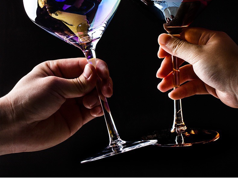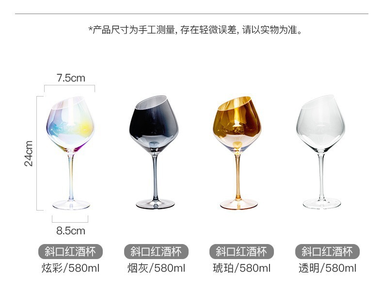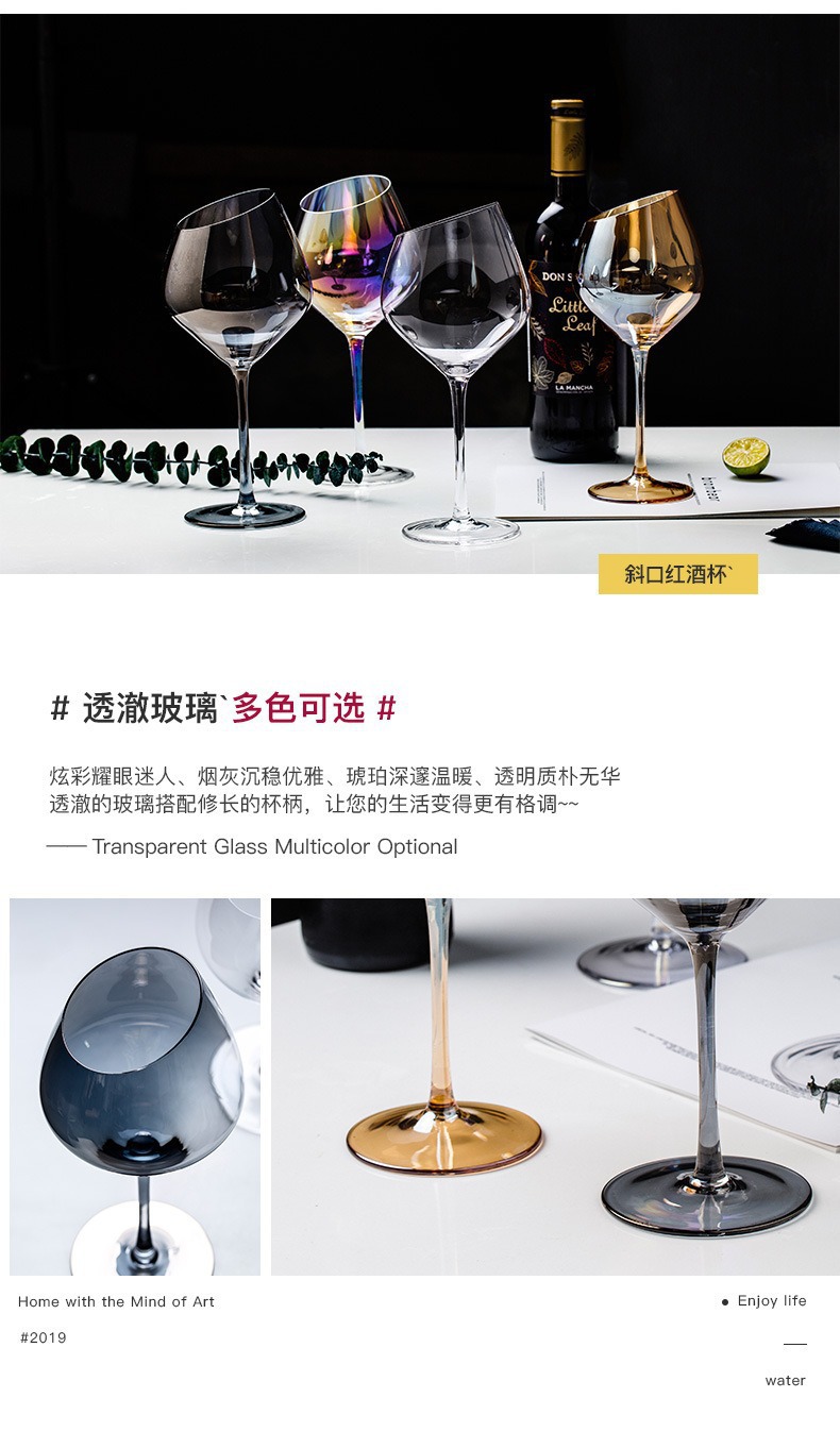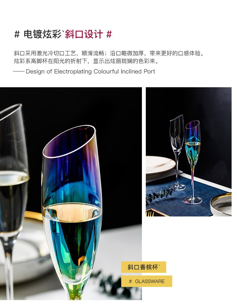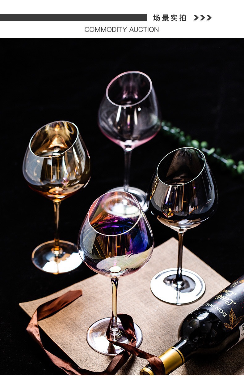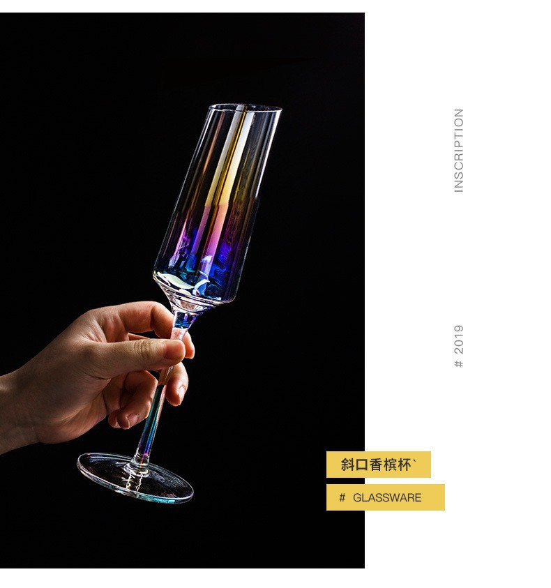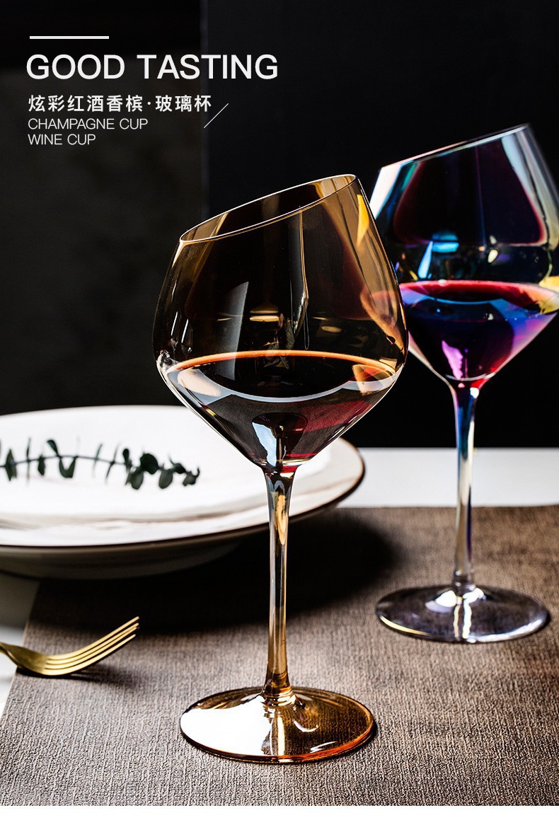 Tazas de cristal de color transfronterizo Tazas de arco iris Tazas de champagne Tazas de vino tinto Tazas de vino de alto nivel