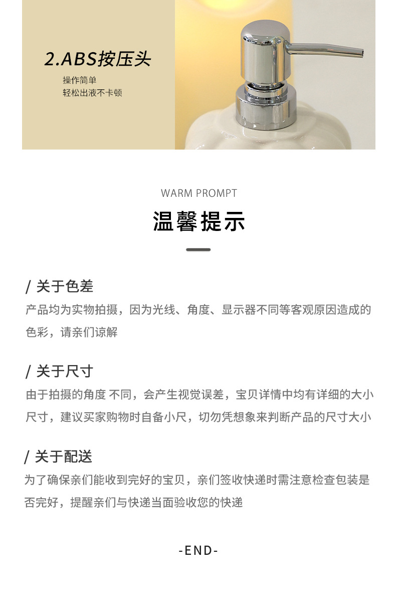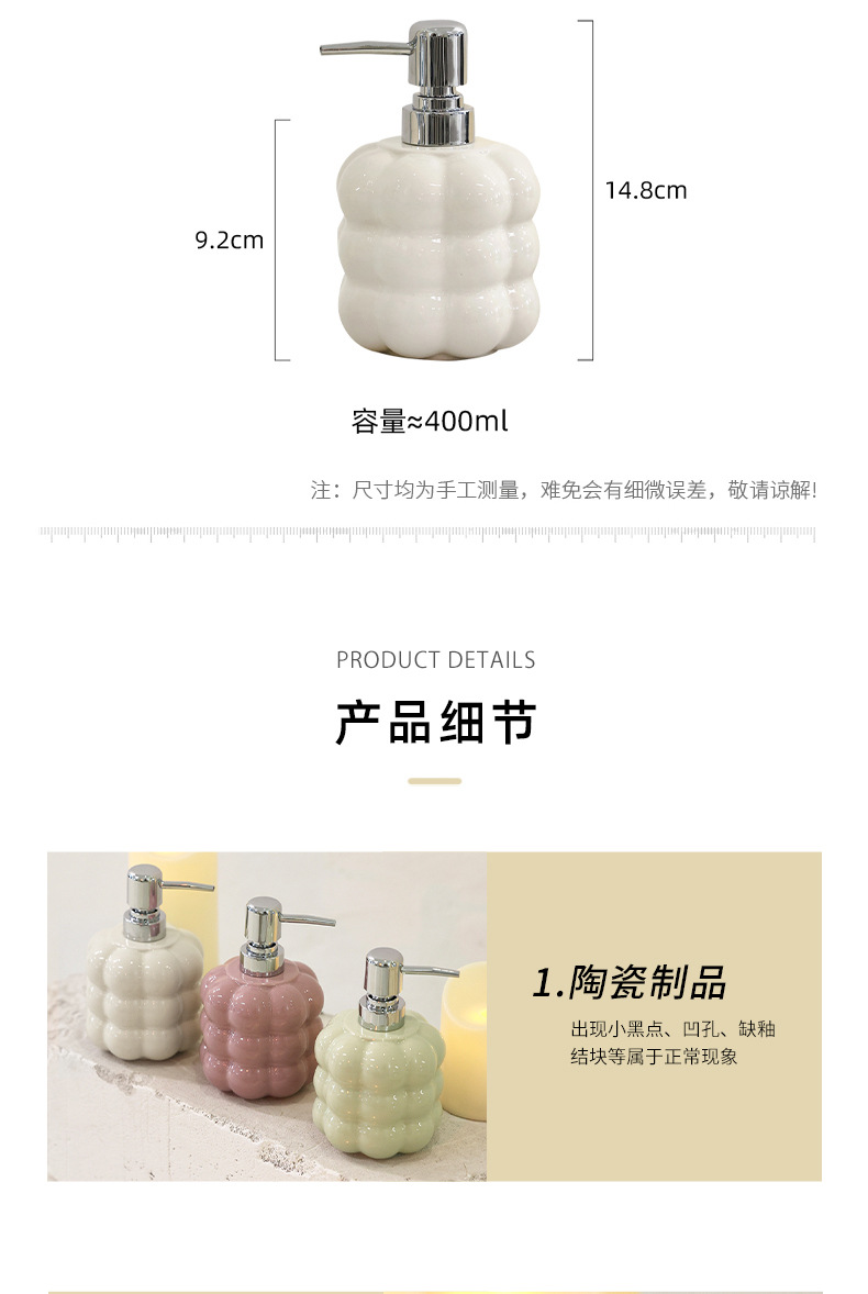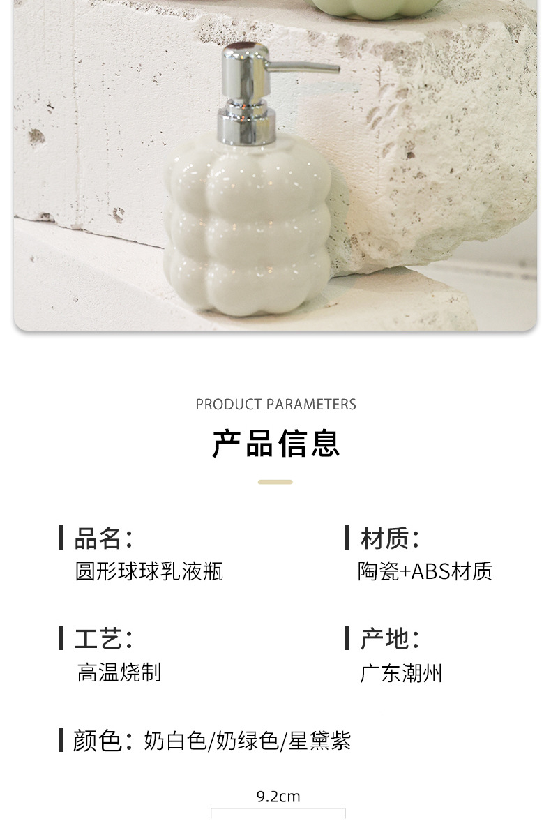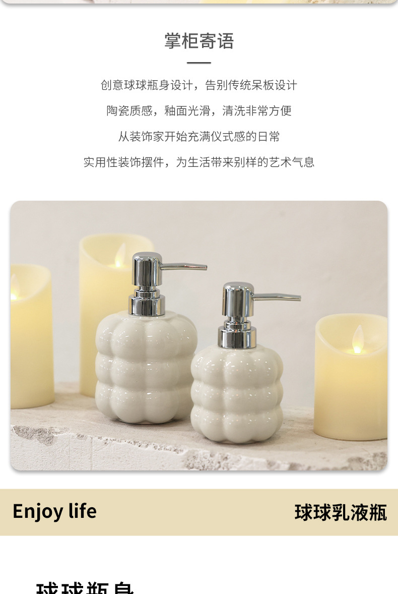 Botella de desinfectante de manos de cerámica simple botella de embalaje de champú de baño botella de prensa de loción botella de hotel