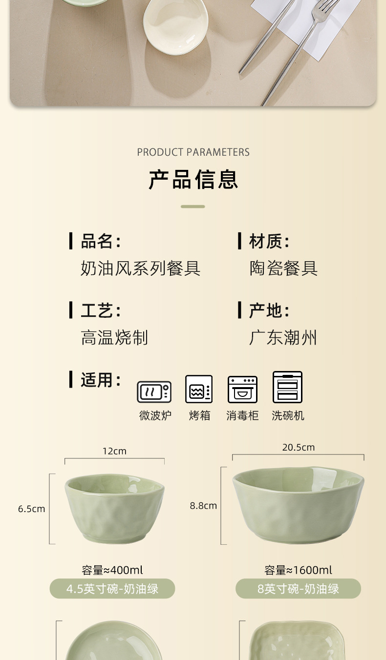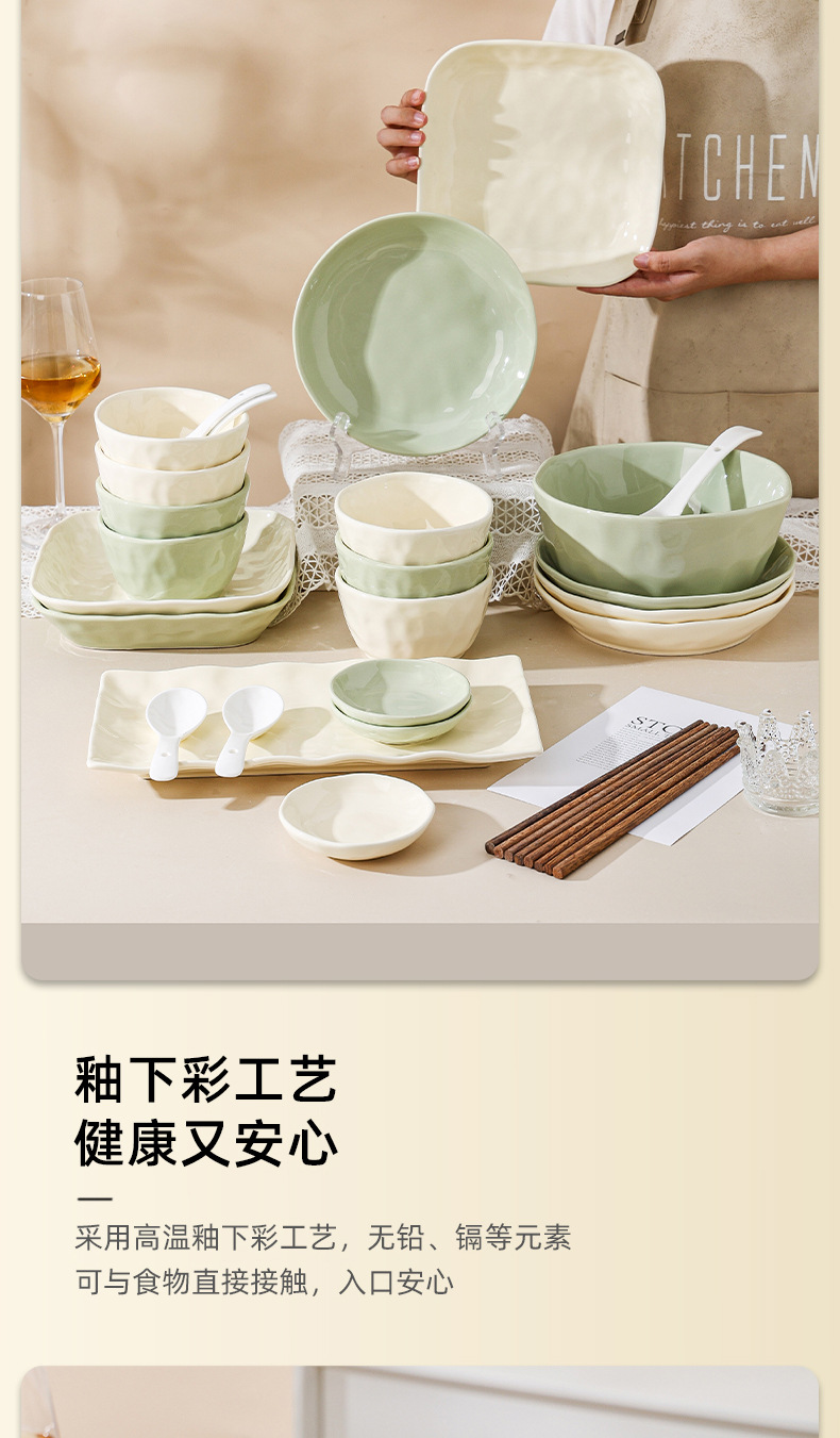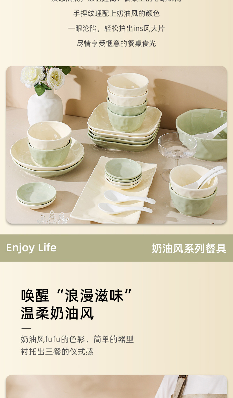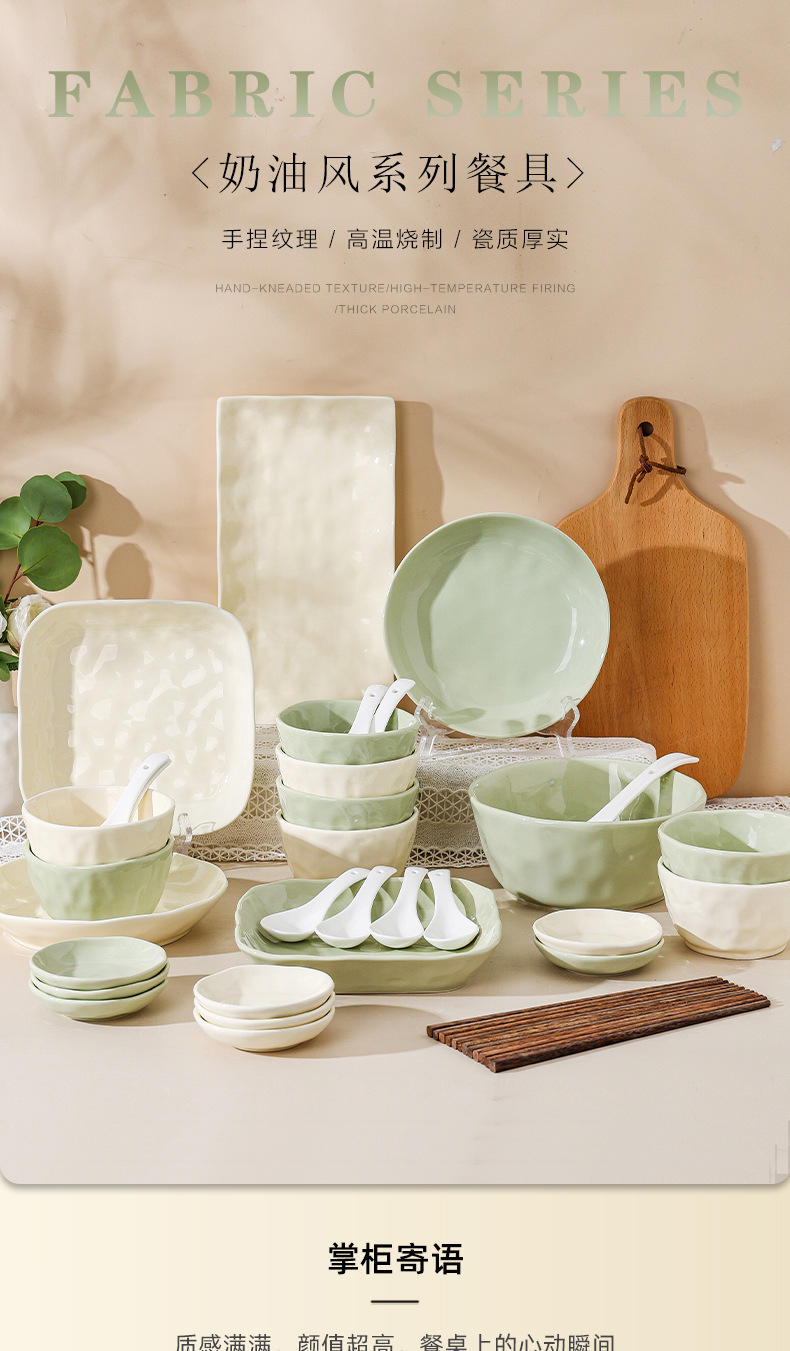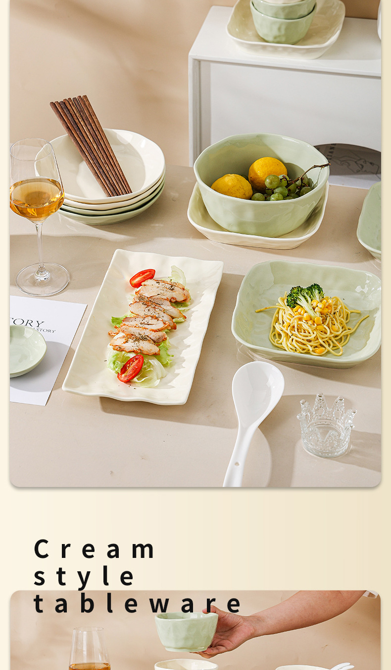 Juego de platos de estilo crema, juego de vajilla para el hogar, juego de vajilla para el hogar 2024 nuevo estilo, lujo ligero de alta calidad