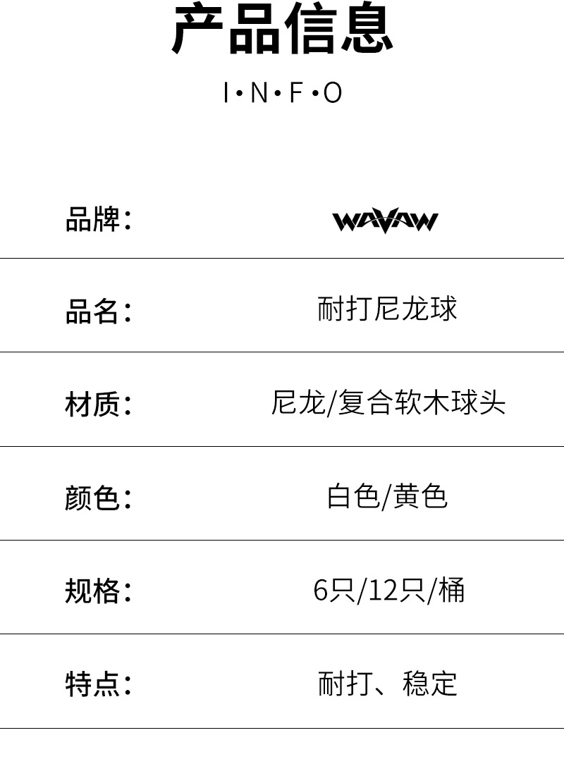 | Color | 6 pack 500 (amarillo de velocidad media).,6 pack 500 (blanco velocidad media).,6 PC W520 (velocidad media amarilla).,6 PC W520 (velocidad media blanca).,12 PCs W520 (amarillo velocidad media).,12 PCs W520 (blanco velocidad media).,3 bolas de nylon (blanco velocidad media) |