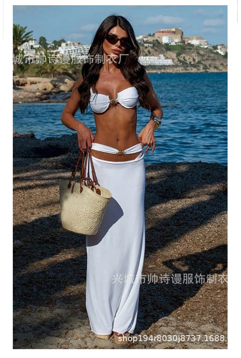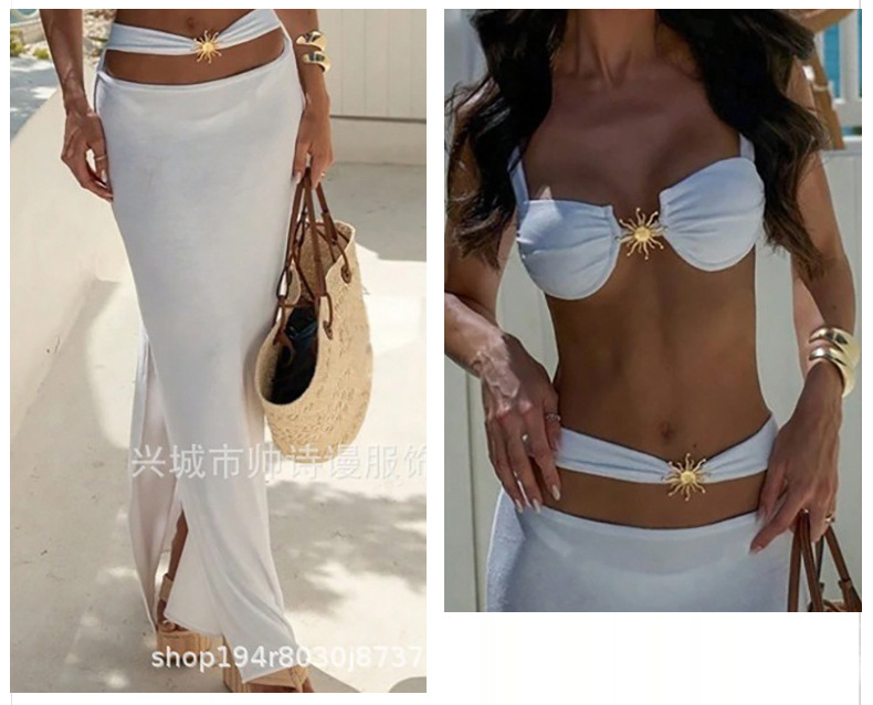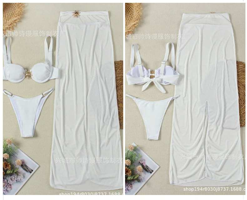 Nuevo traje de baño de tres piezas con cordones bikini sexy traje de baño dividido bikini europeo y americano color sólido falda de playa delgada