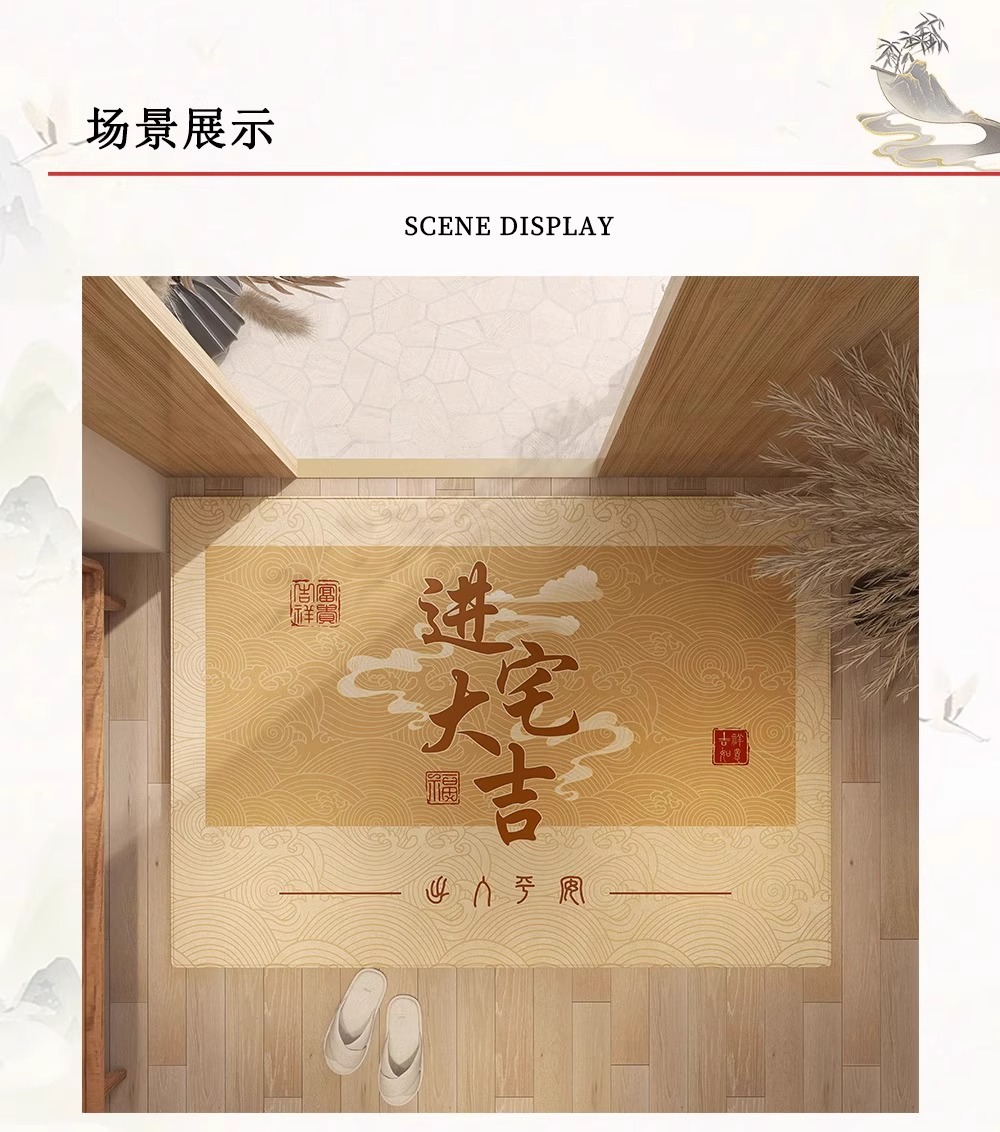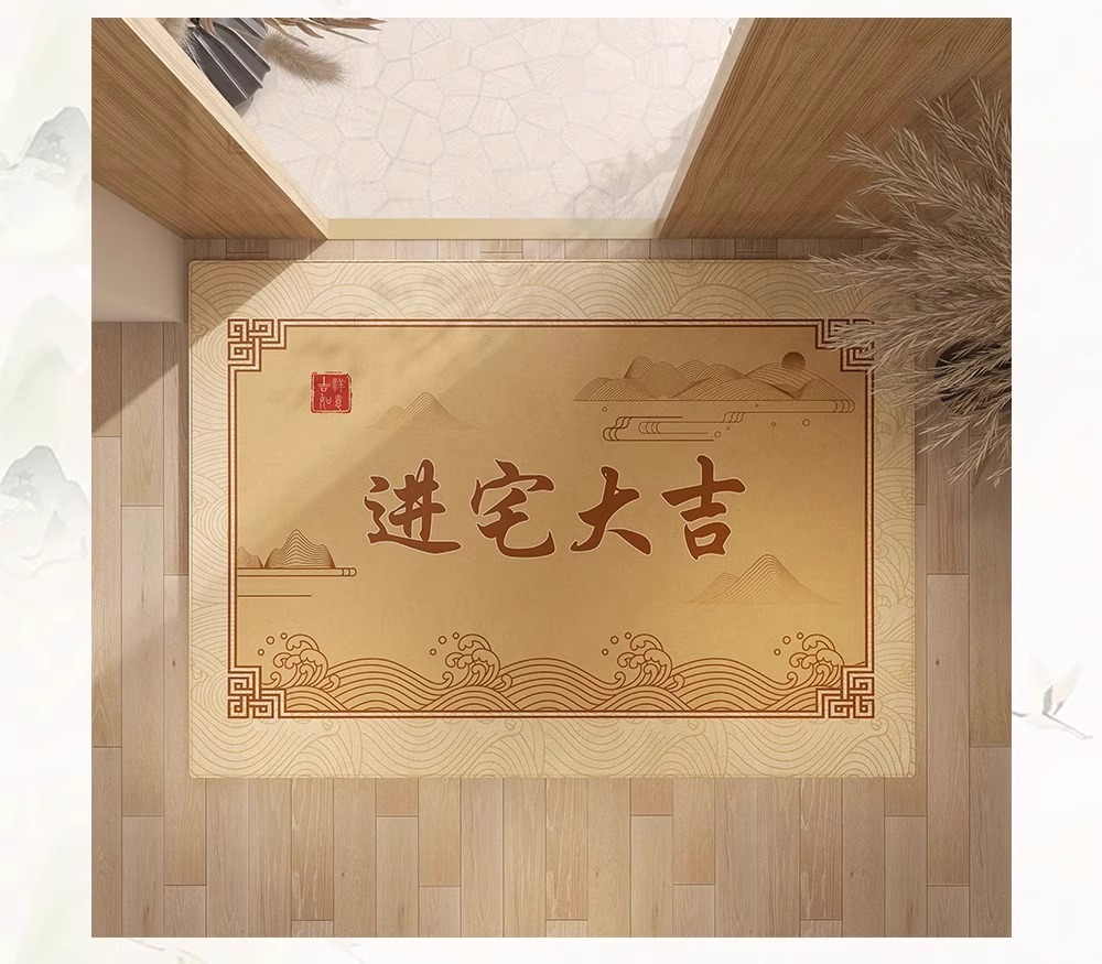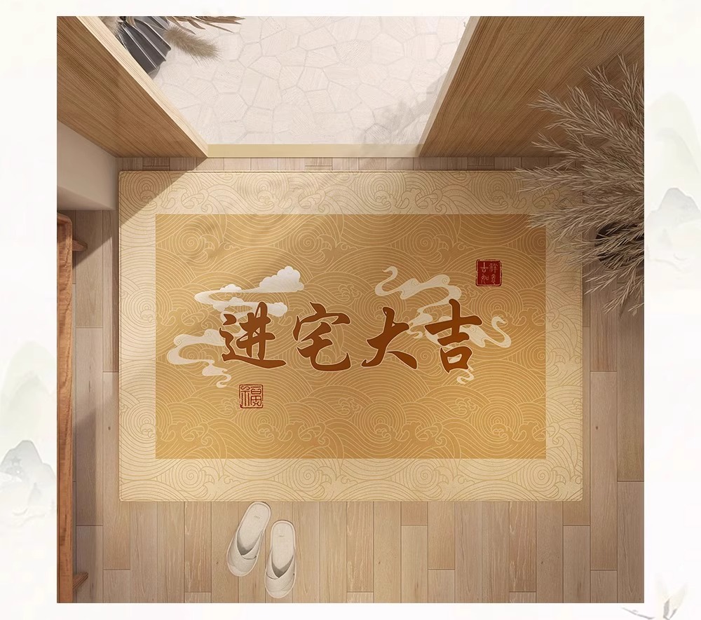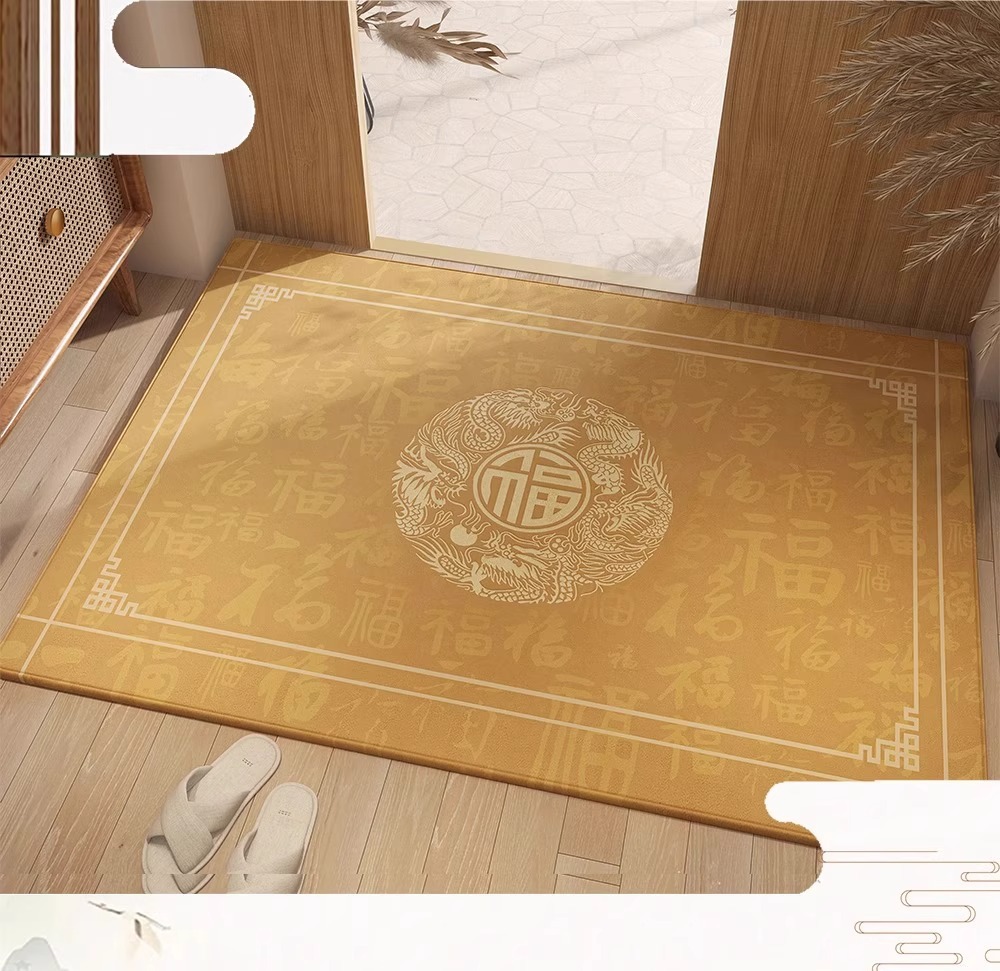 Nueva alfombra de piso de puerta de entrada amarilla china, alfombra de pie antideslizante resistente a la suciedad para el hogar, alfombra dorada en la puerta