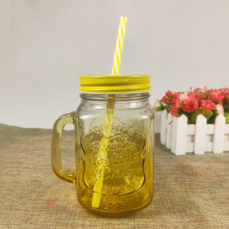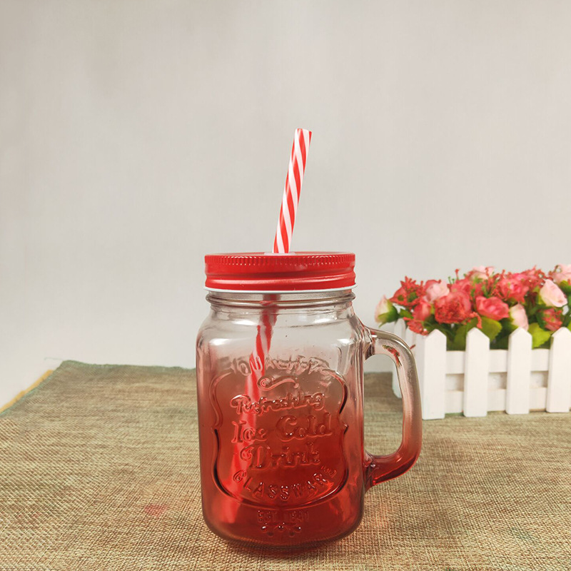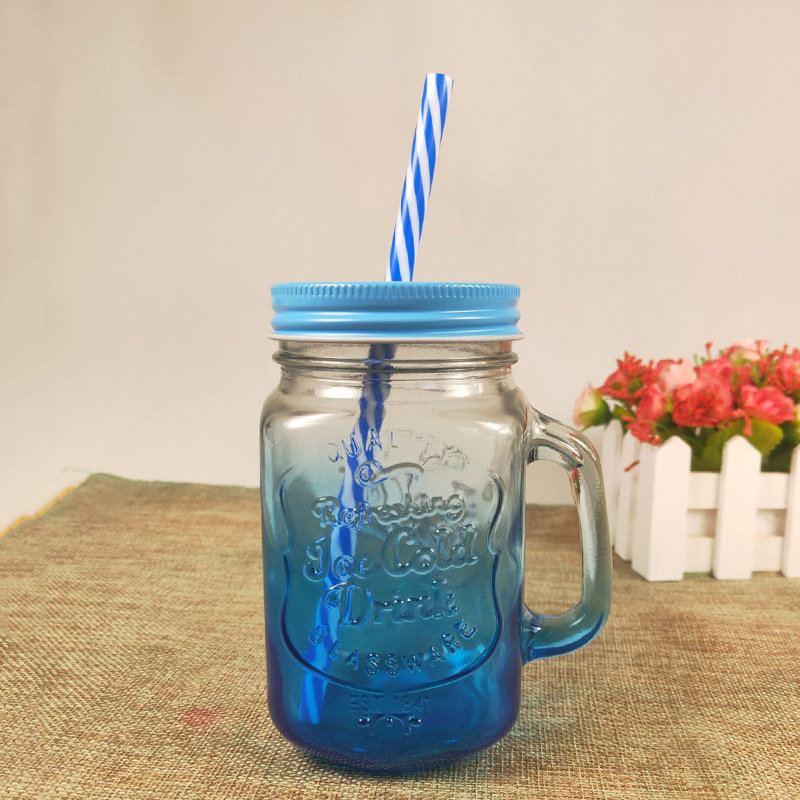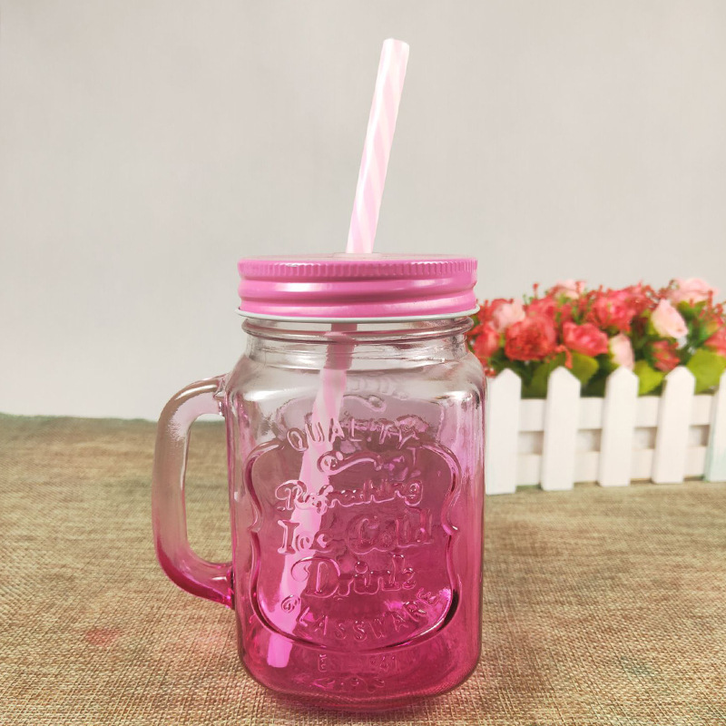 Letras de gradiente de mango de tazas 480ml con tapa creativa tazas de vidrio de color gradiente tazas de agua de mano tazas Mason