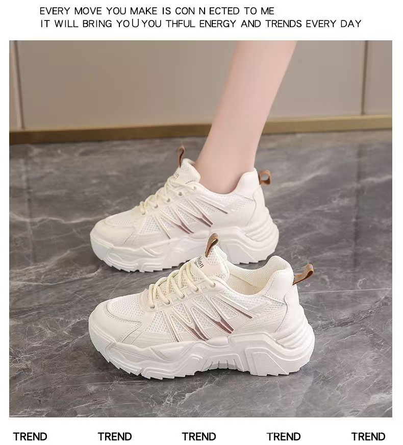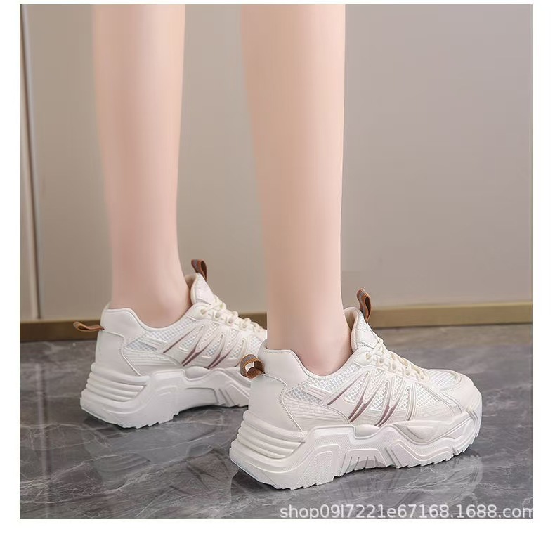 Mujeres 2024 primavera y otoño nuevo estilo de moda zapatos casuales de malla ligeros con suela gruesa zapatos deportivos de tendencia estudiantiles zapatos de padre rojo en línea