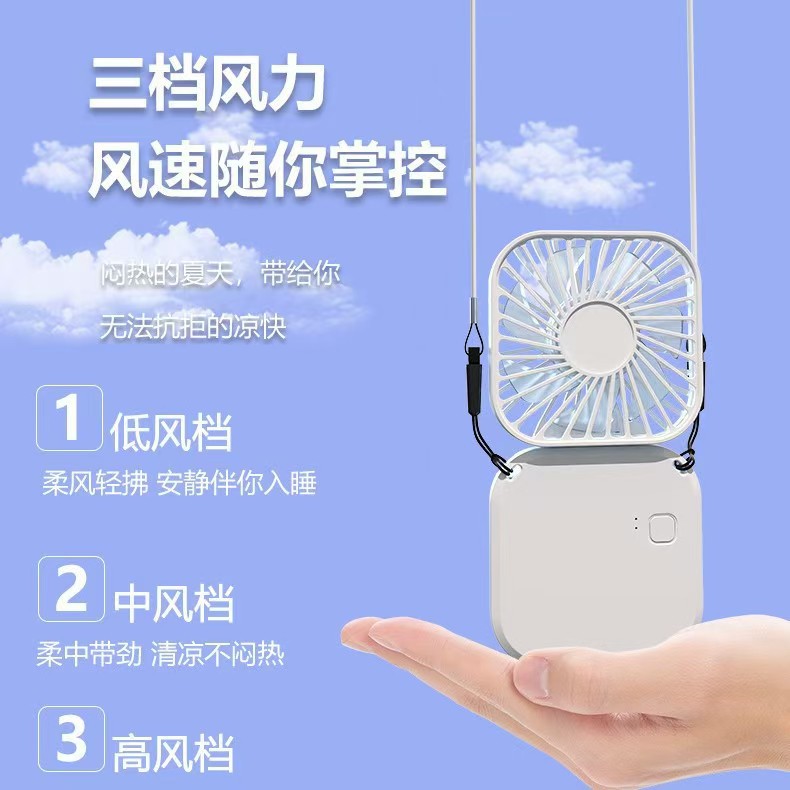 Mini ventilador plegable para colgar en el cuello, recargable por USB, creativo, de doble uso para escritorio, oficina y exteriores, pequeño y portátil.