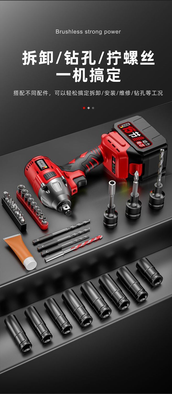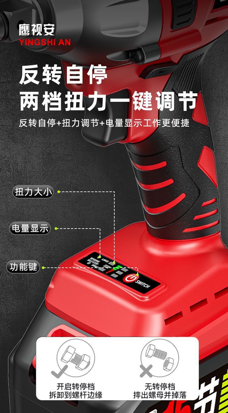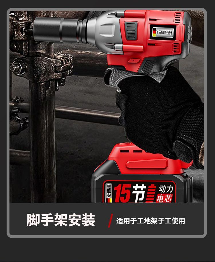 Llave eléctrica sin escobillas Llave de impacto de litio Llave de carga de gran torsión Llave de carga andamios carpintería manga de reparación de automóviles Cañones de aire