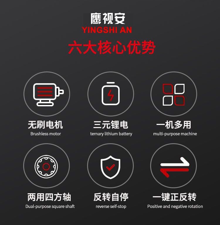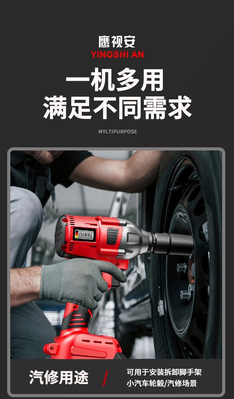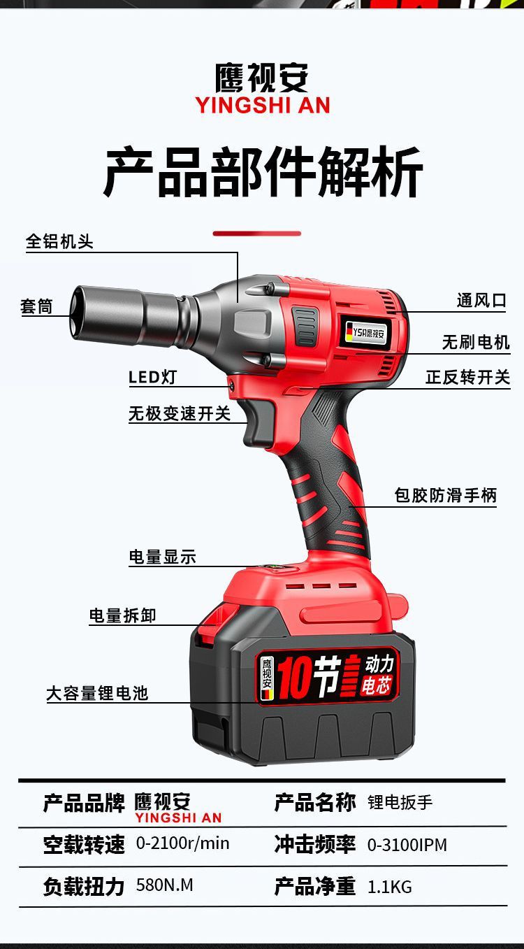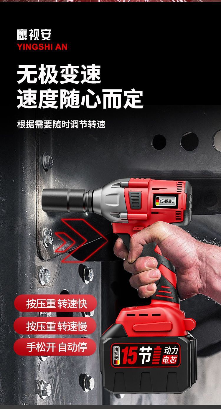 Llave eléctrica sin escobillas Llave de impacto de litio Llave de carga de gran torsión Llave de carga andamios carpintería manga de reparación de automóviles Cañones de aire