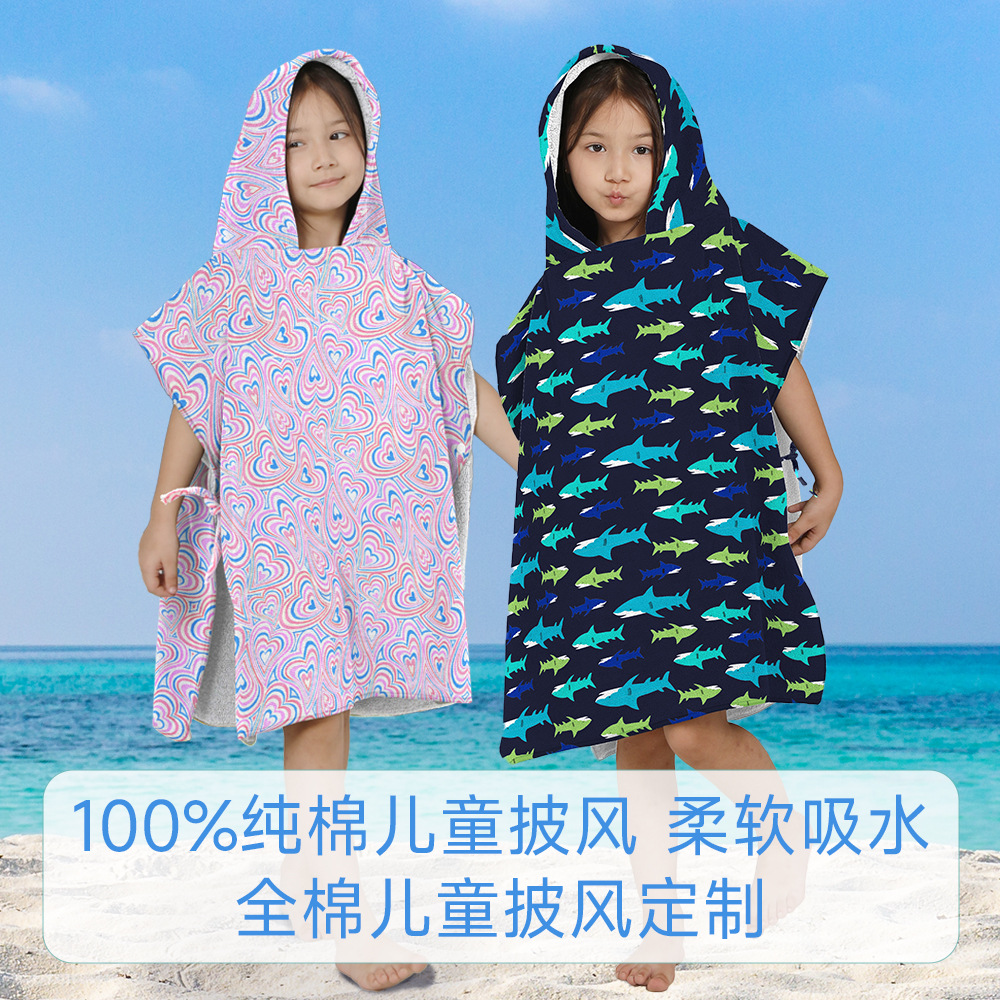 Algodón 100% algodón capa para niños toalla de baño capa bebé toalla de baño con capucha absorbente de dibujos animados estampado de playa bata de baño