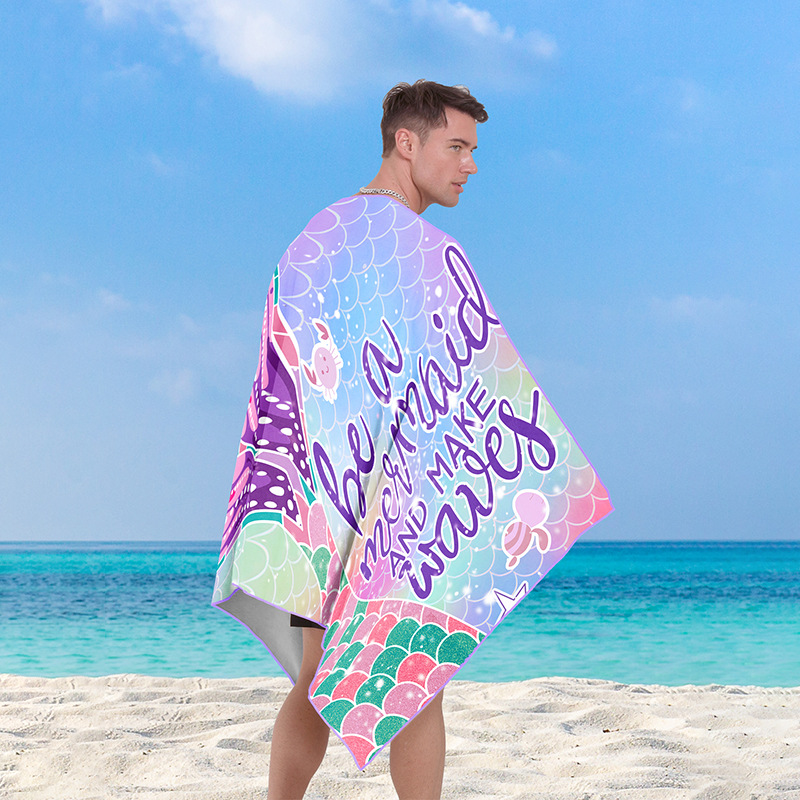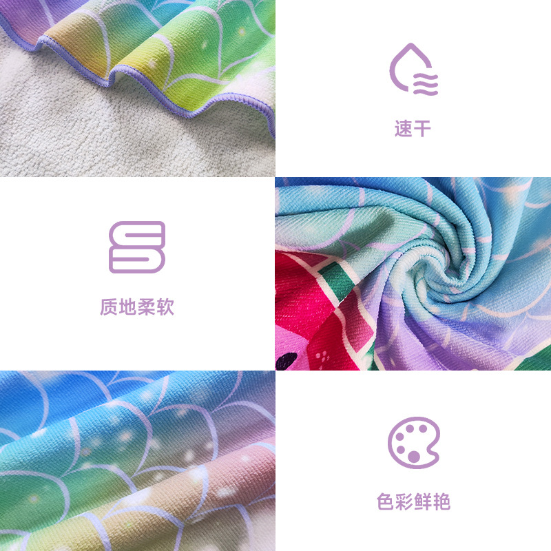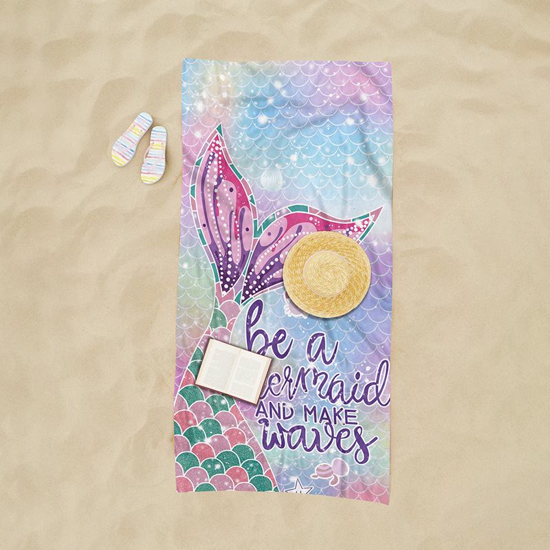 Toalla de playa de microfibra de secado rápido junto al mar Toalla de baño con estampado de sirena de dibujos animados absorbente de piscina Pedido mínimo de una pieza
