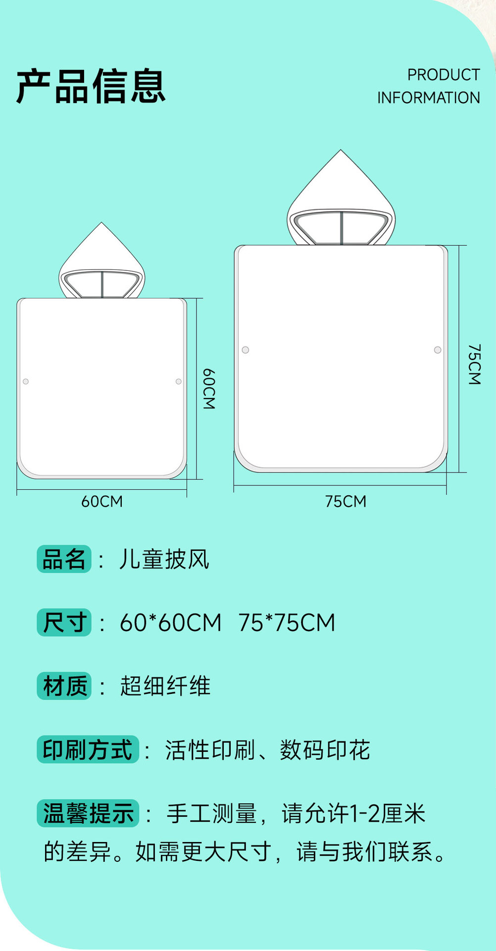 Toalla de baño para niños capa capa de playa capuchón toalla de baño de impresión digital rayas absorbentes