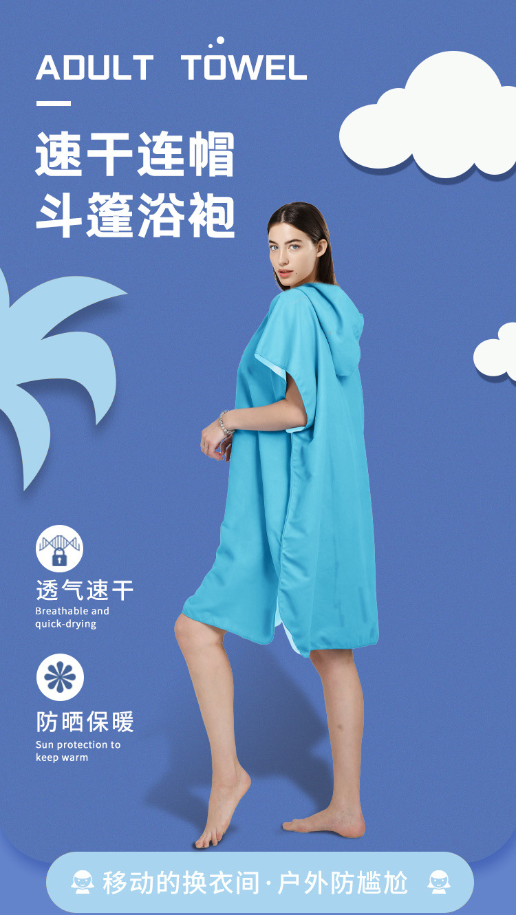 Adulto playa natación buceo cambiador bata de baño doble cara gorra rápida absorción de agua secado veloz capa toalla de baño