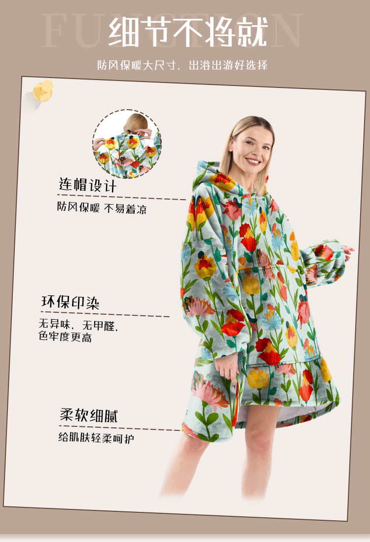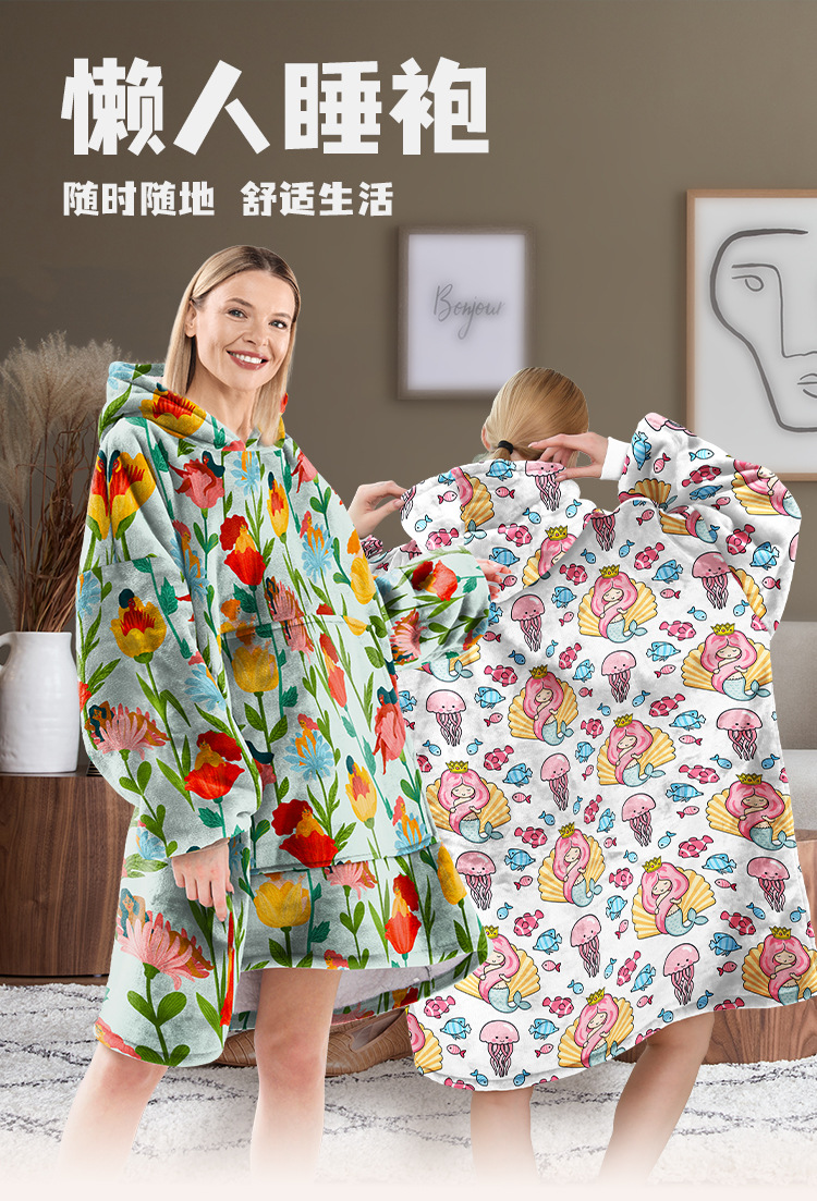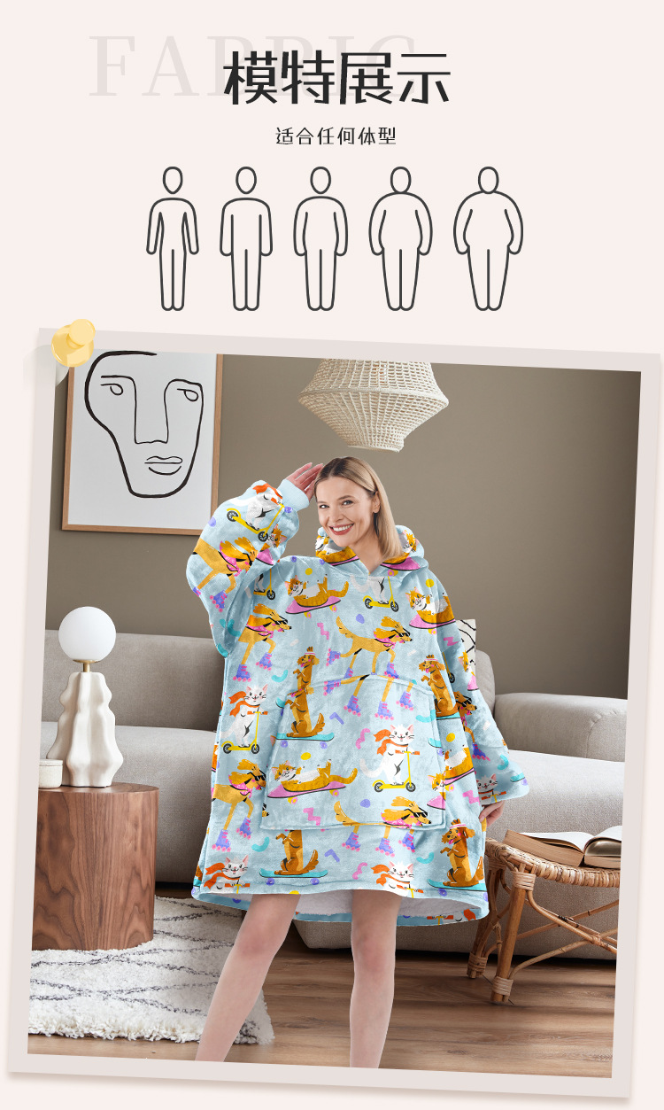 Amazon con capucha perezoso manta invierno casual suelta suéter con capucha tamaño libre de terciopelo manta desgaste del hogar