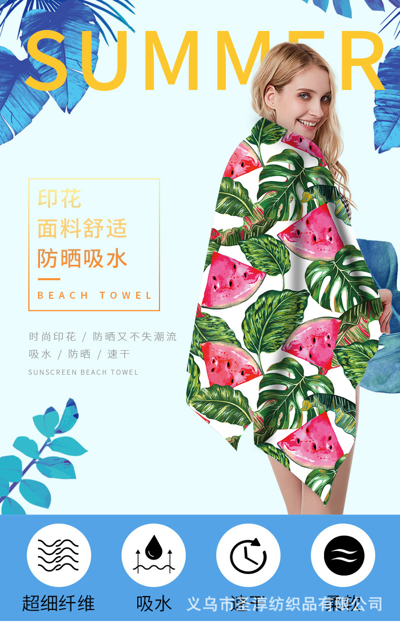 Patrón de impresión de doble cara directo de fábrica Toalla de playa absorbente Toalla de baño cambiable de secado rápido gran cantidad en stock al por mayor