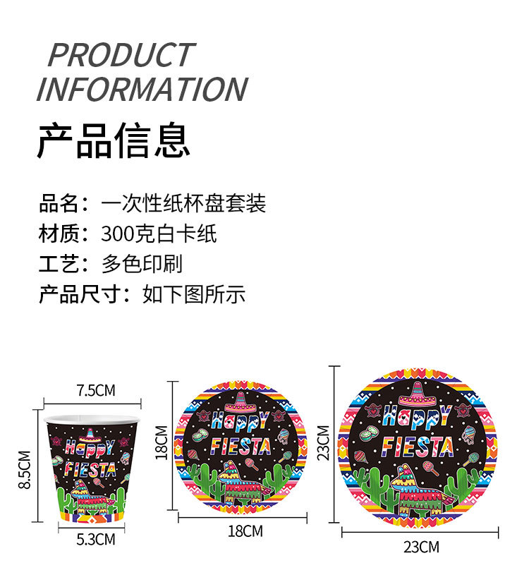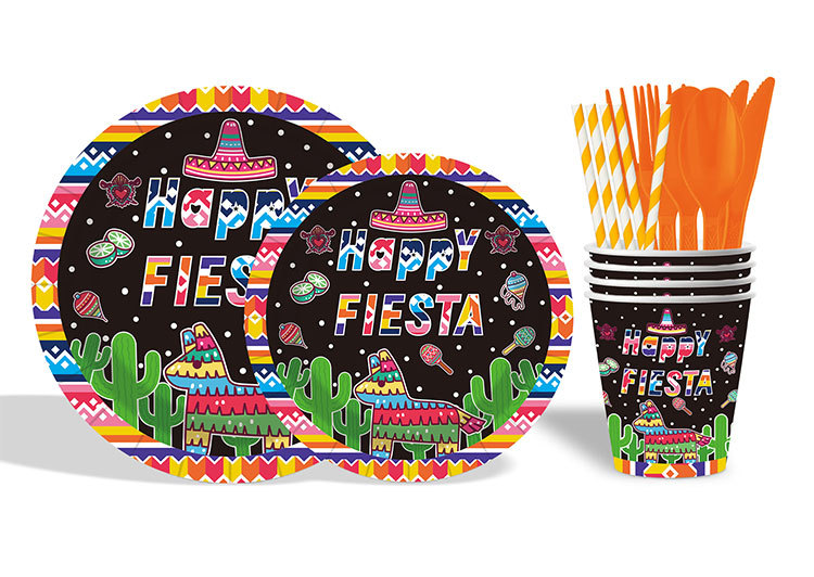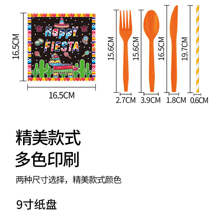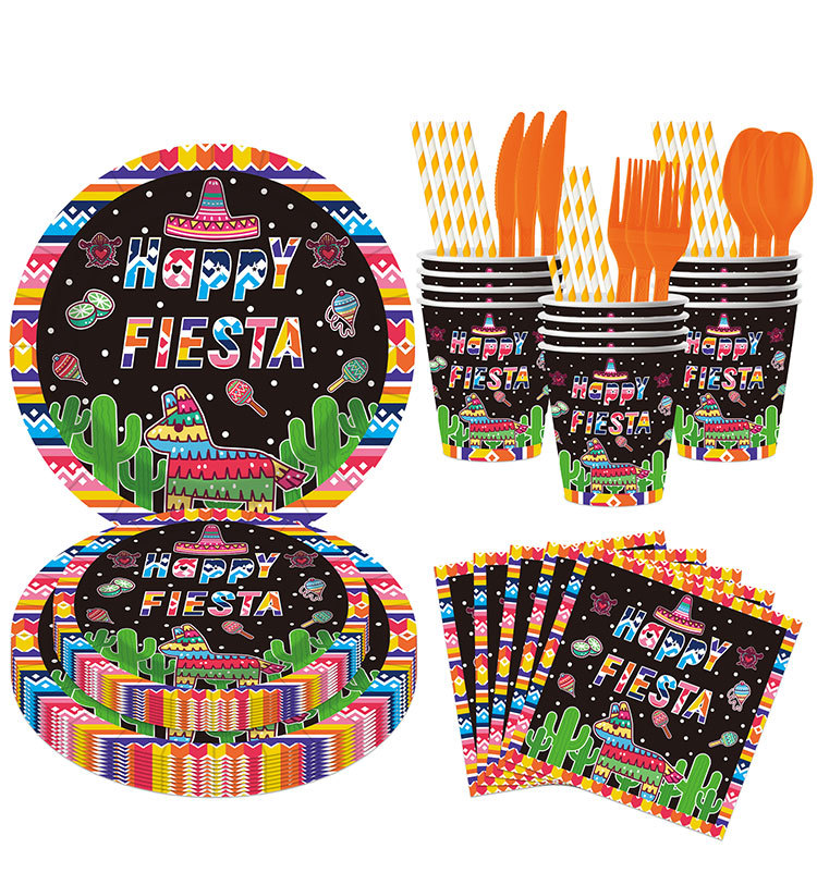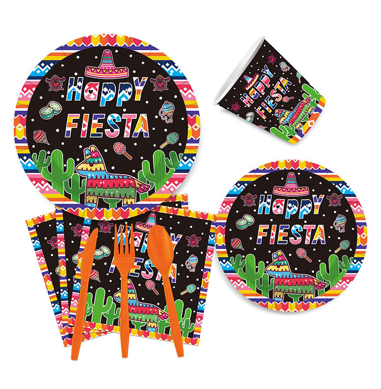 Carnaval mexicano decoración de fiesta temática de carnaval bandeja de papel desechable taza de papel toallas set de cubiertos de fiesta