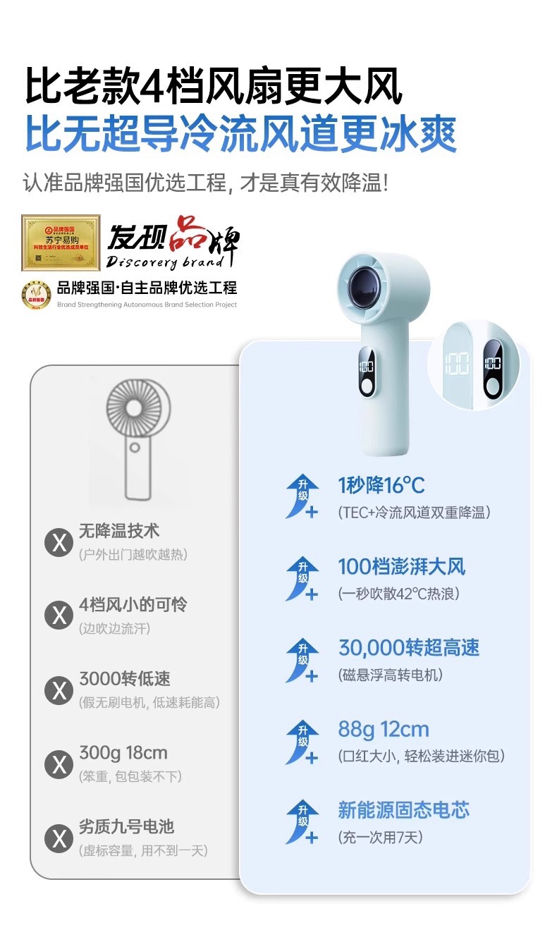 Ventilador pequeño de mano cuidadosamente seleccionado, silencioso, mini USB pequeño, batería de larga duración, artefacto de enfriamiento portátil