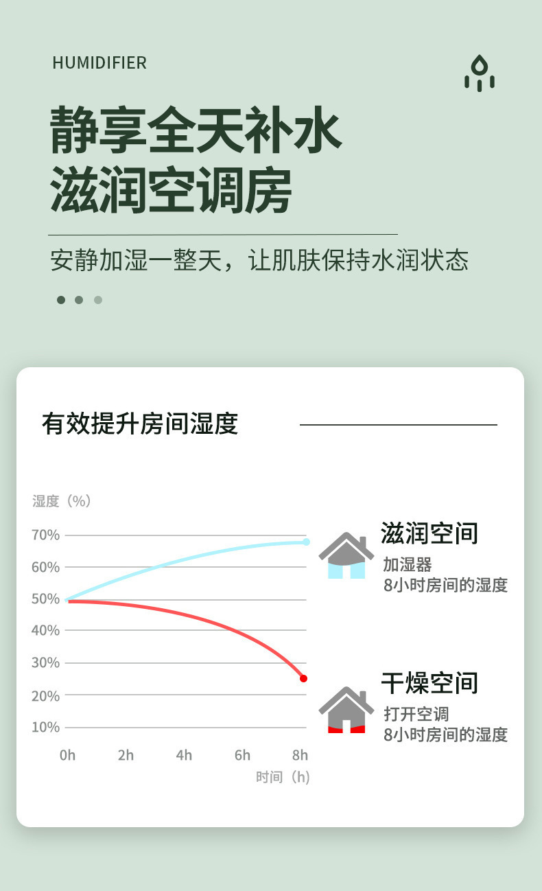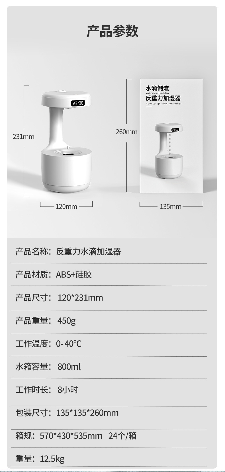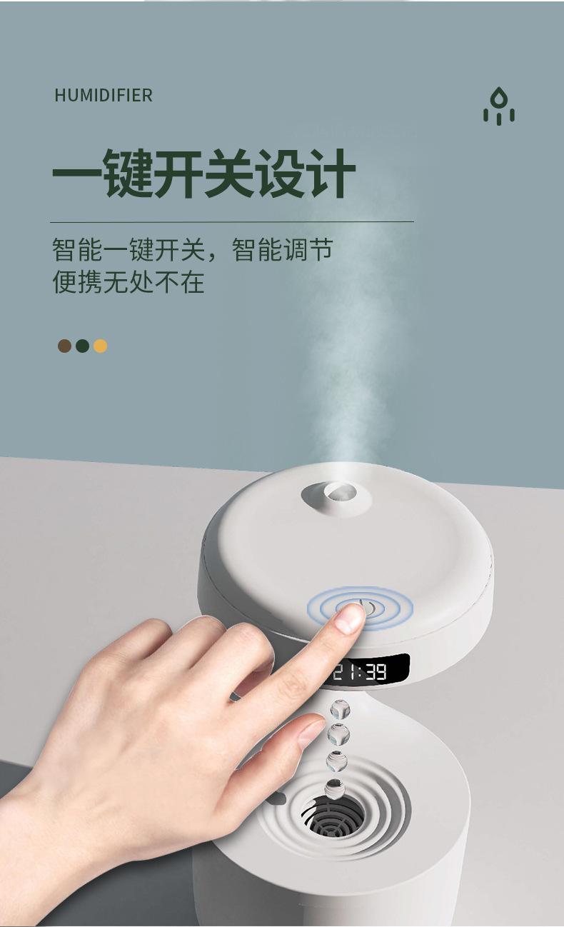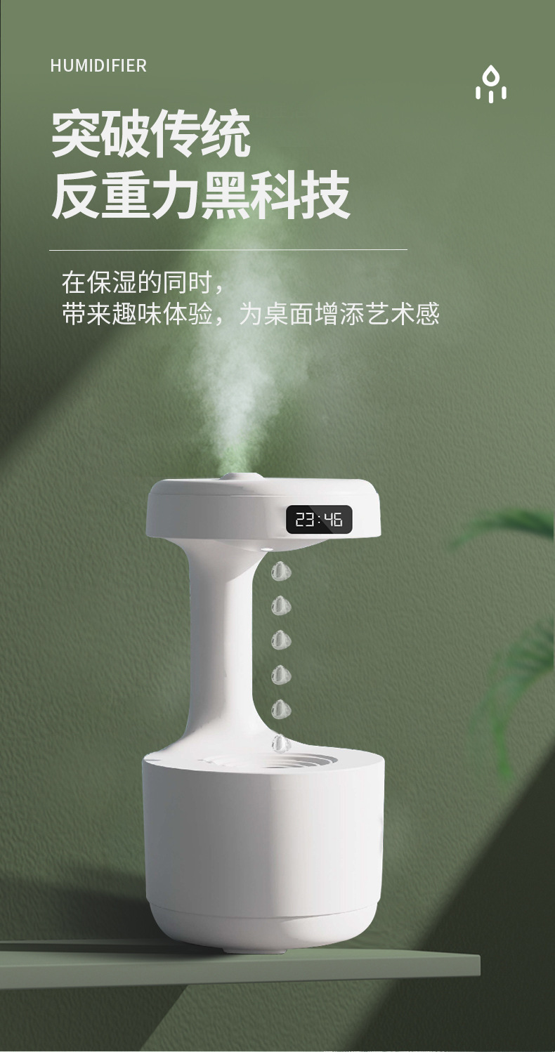 Humidificador antigravedad de reflujo de gota de agua creativo transfronterizo de gran venta, humidificador de spray silencioso para el hogar mini de gran capacidad