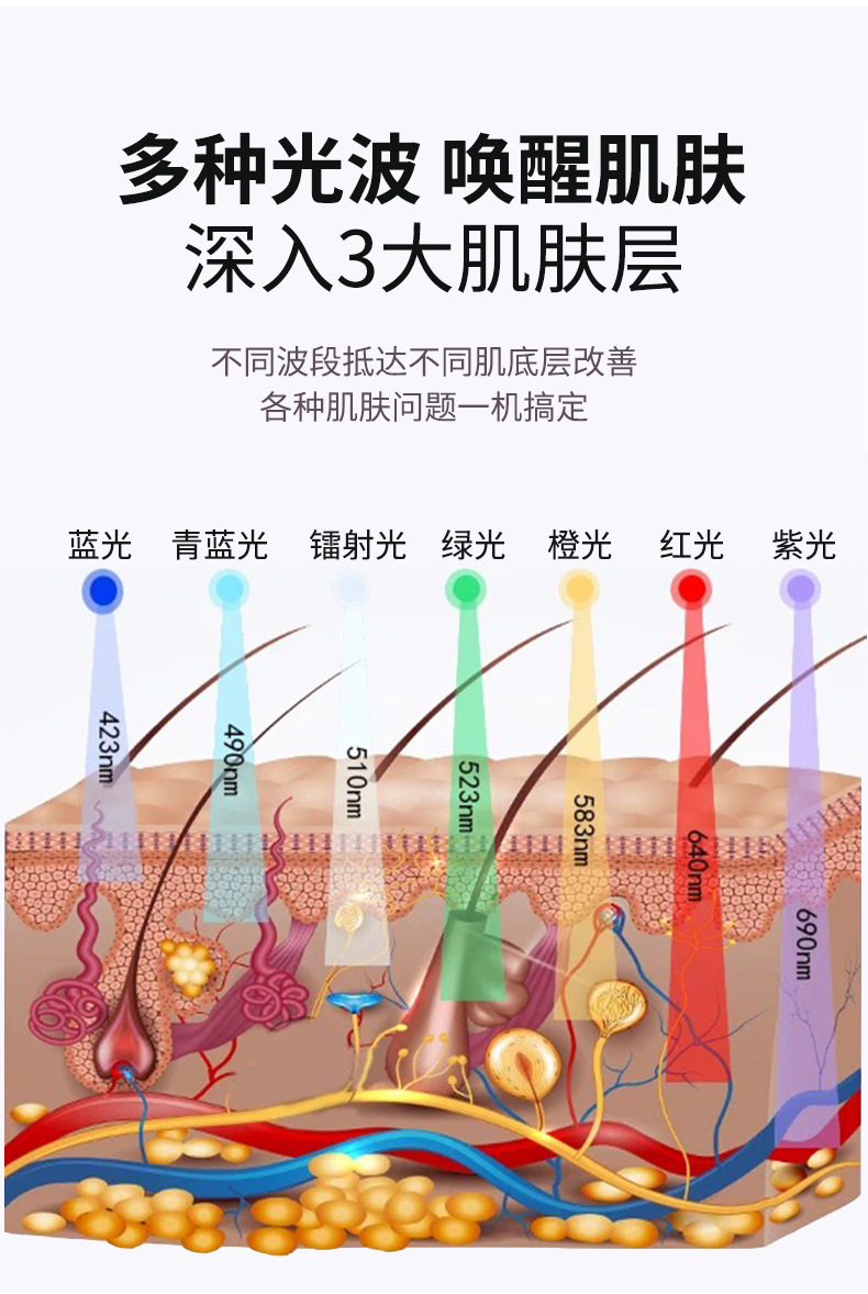 Espectrómetro de belleza para el hogar transfronterizo, salón de belleza, instrumento de rejuvenecimiento de fotones de luz azul y rojo, espectrómetro de spray de siete colores plegable