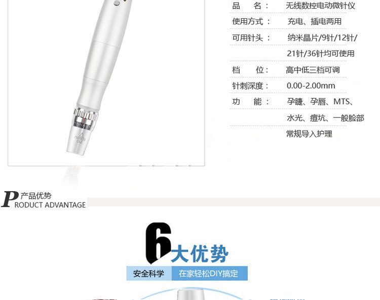Instrumento eléctrico de microagujas El instrumento de luz de agua nano MTS promueve la penetración y la introducción del instrumento para el embarazo, cirugía de labios y pestañas, instrumento de belleza con aguja de luz de agua reafirmante