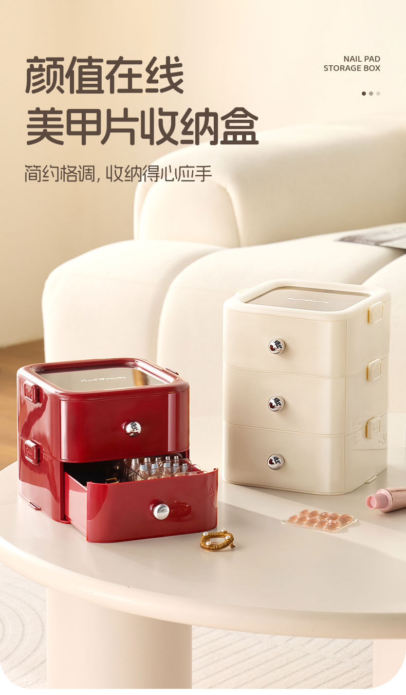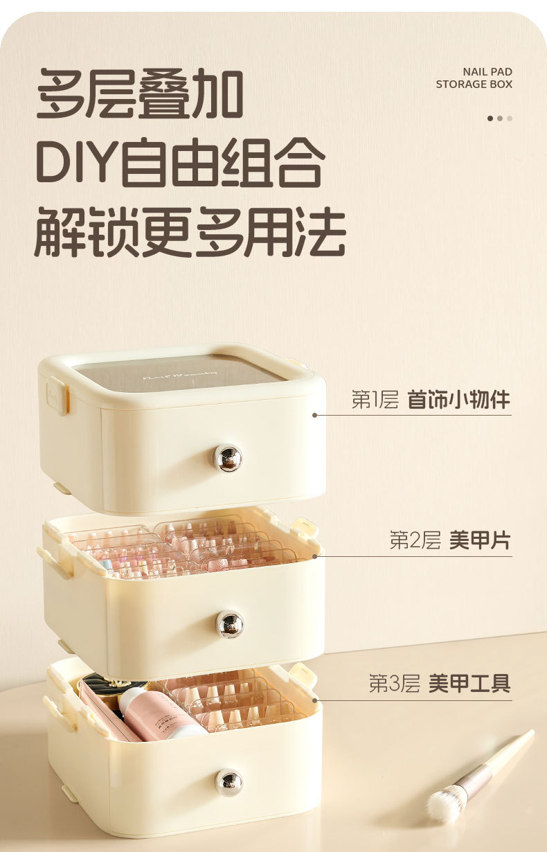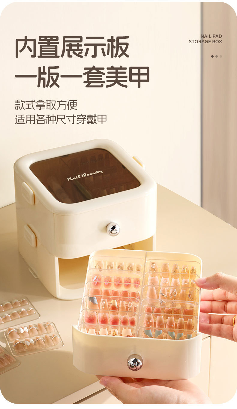 Nueva caja de almacenamiento de uñas y pestañas acabado y exhibición de joyas de pestañas de uñas hechas a mano tipo cajón multicapa