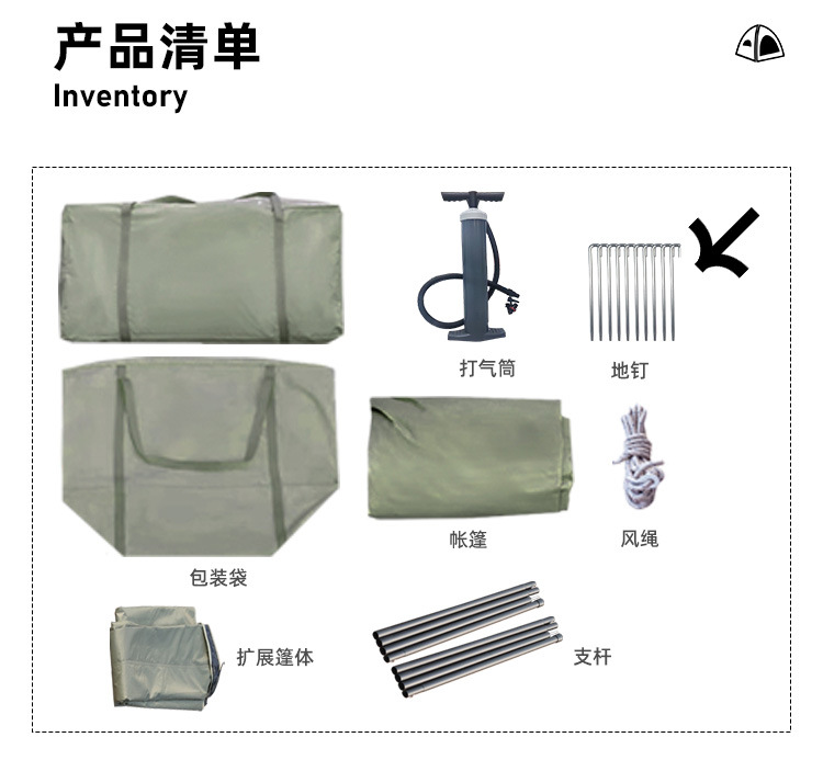 | Colores | Cuenta maestra de viaje de lujo ligero de 6 metros cuadrados,6 metros cuadrados de expansión de 6 metros cuadrados de la cuenta principal (modelo manual),6 metros cuadrados de expansión de 6 metros cuadrados de la cuenta principal (bomba eléctrica) |