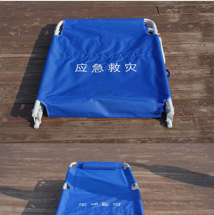 Pengyuan portátil acero y plástico civil cama de alivio de desastres azul plegable al aire libre multifuncional cama de marcha ligera cama de acompañante al por mayor