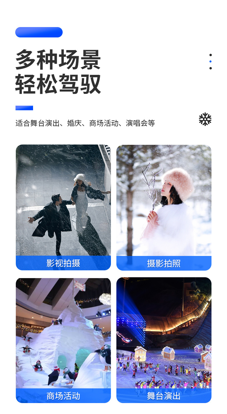 Máquina de nieve de simulación a gran escala de alta calidad para hacer nieve artificial, máquina de nieve y nieve, equipo de escenario interior y exterior
