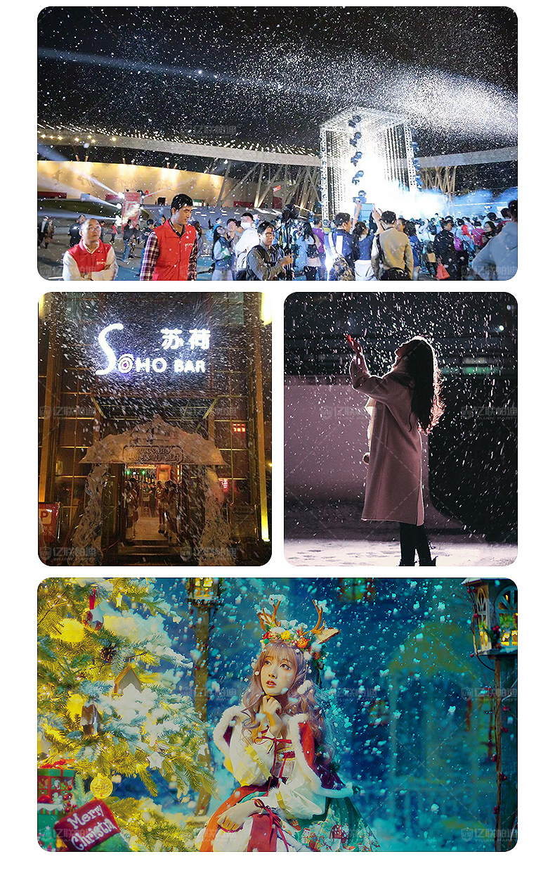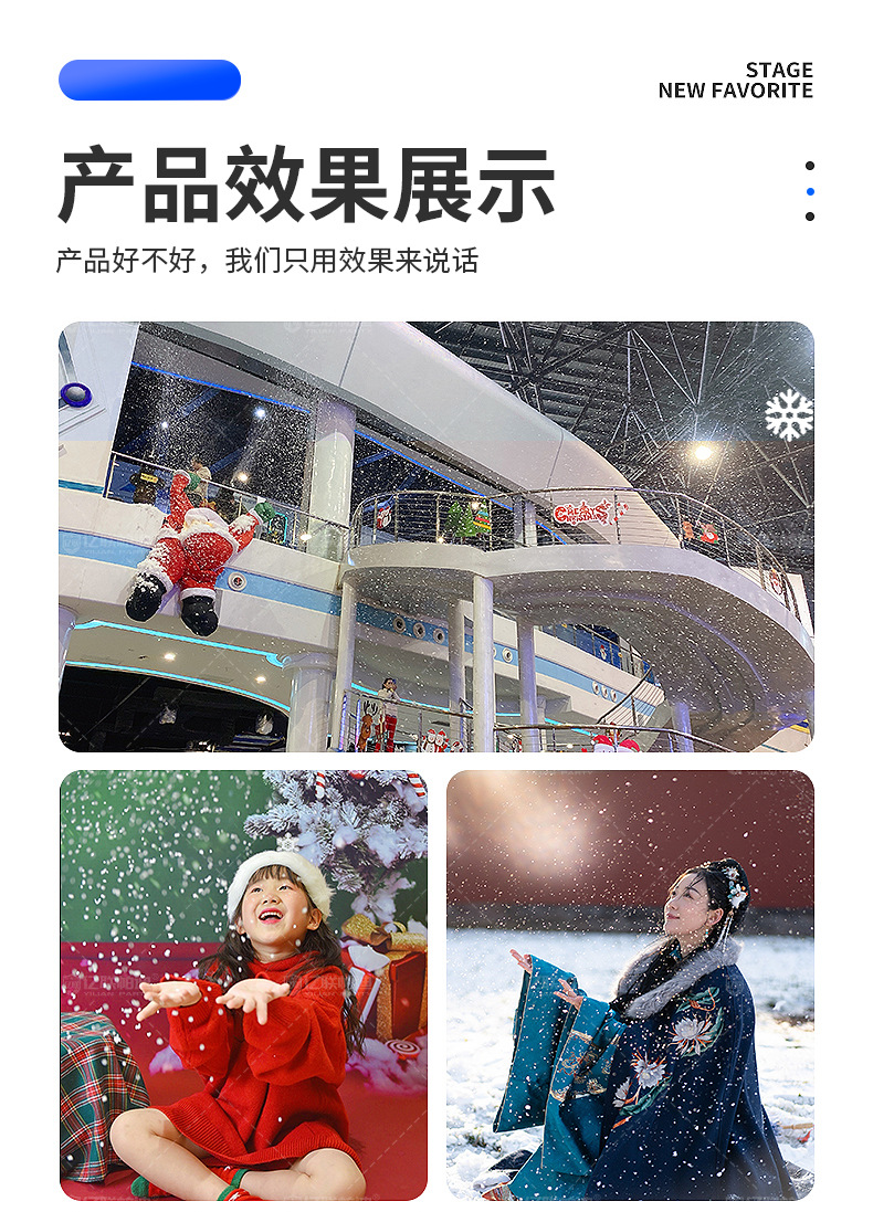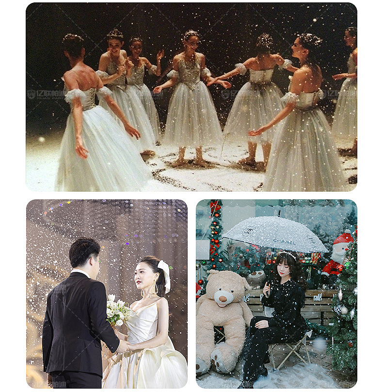 Características del productoGran diseño, adecuado para grandes escenarios, eventos y lugares. El efecto de copo de nieve de alta simulación puede crear una escena de nieve realista.