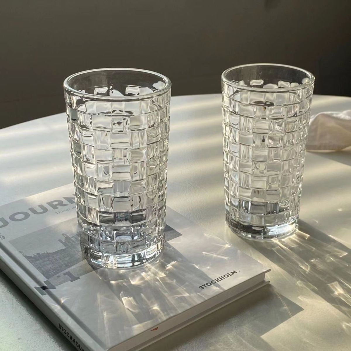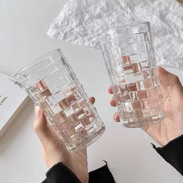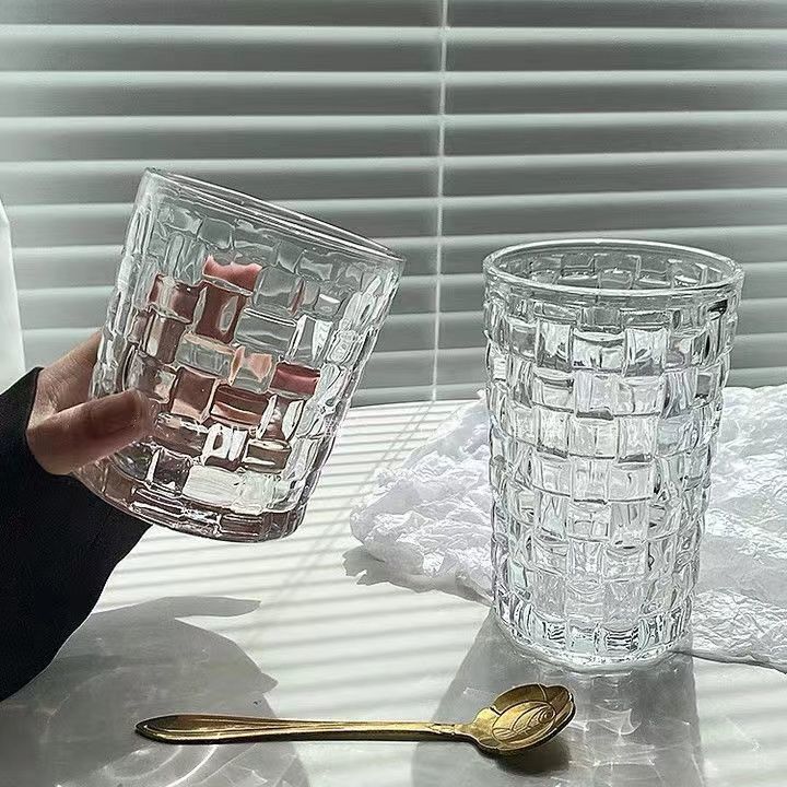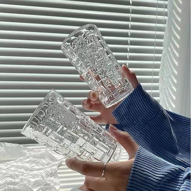 Taza de vidrio en relieve de ratán Taza tejida creativa Taza de agua en relieve para el hogar de bosque fresco Taza de bebida fría de café de jugo