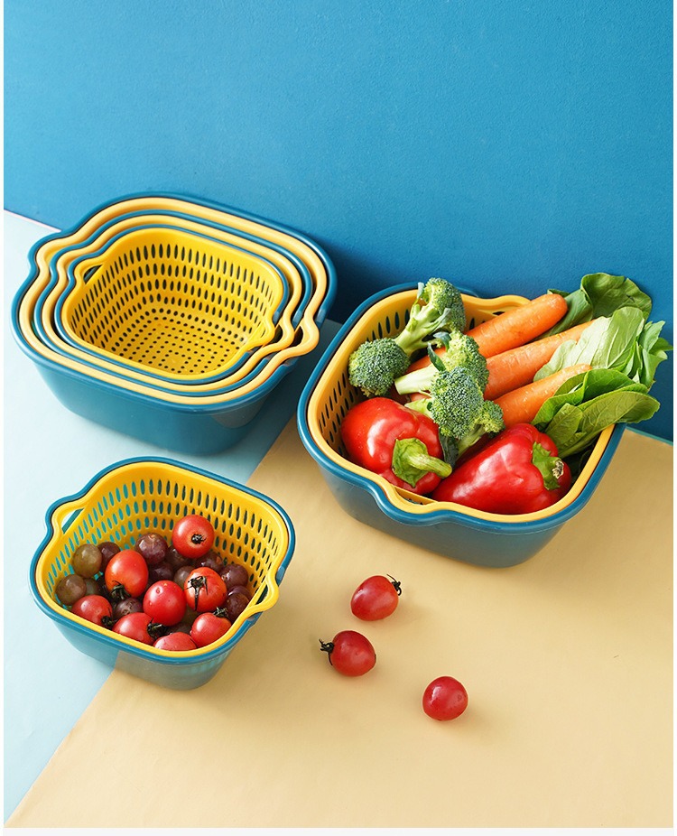 Lavabo de verduras hueco de doble capa de plástico, cesta de escurrido, suministros de cocina, bandeja de frutas de almacenamiento, cesta de drenaje de frutas y verduras de lavado