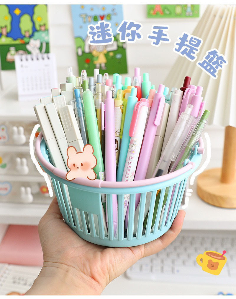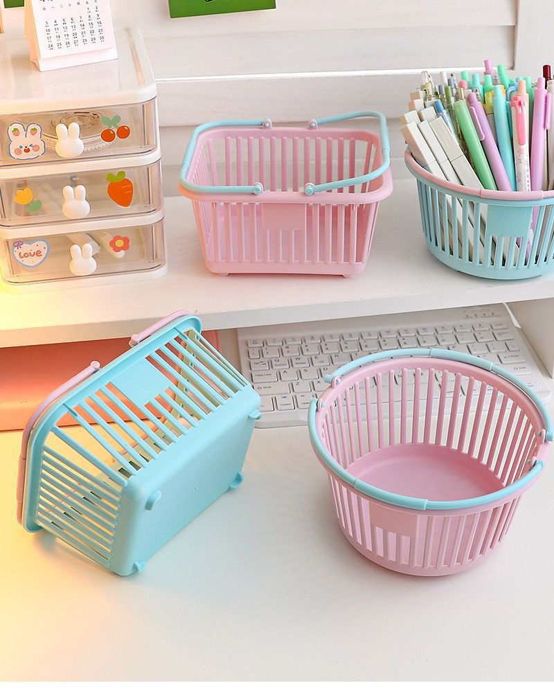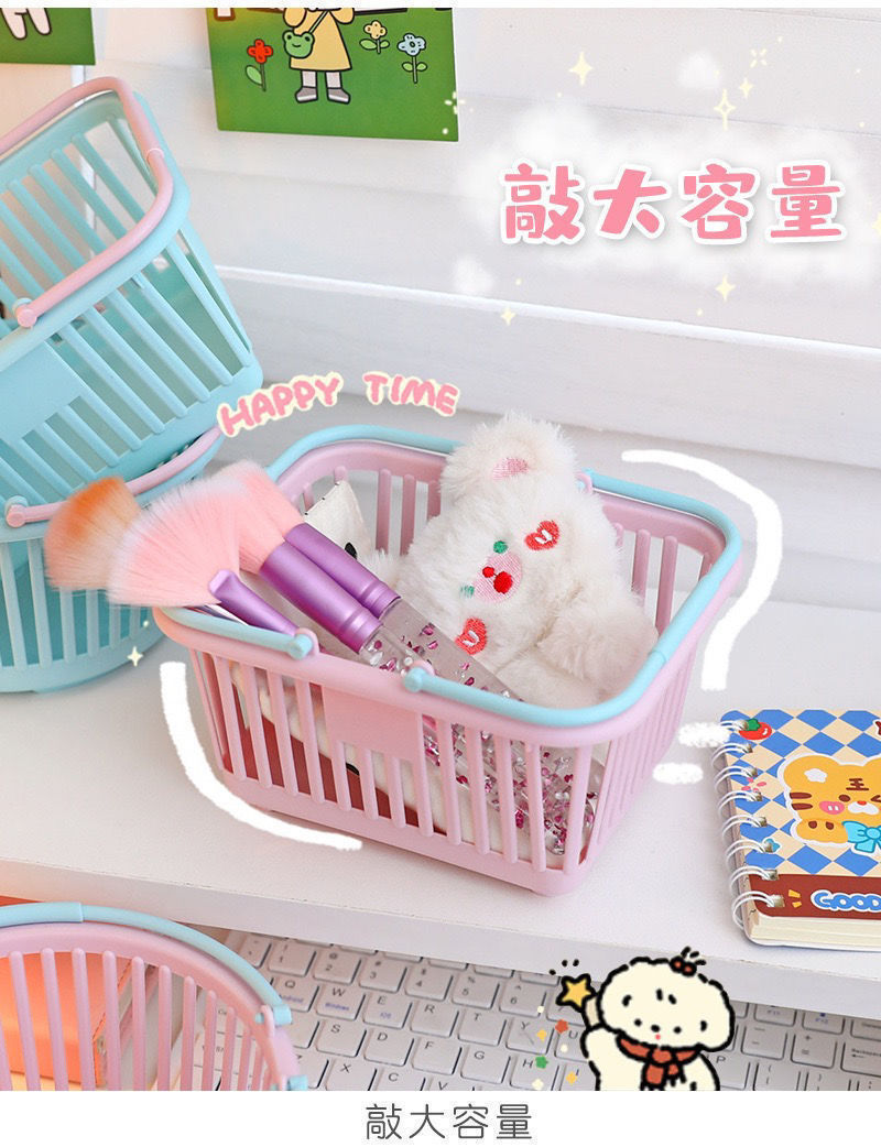 Cesta de almacenamiento portátil macarón encantadora rosa de corazón de niña pegatinas de papelería accesorios de escritorio cesta de almacenamiento