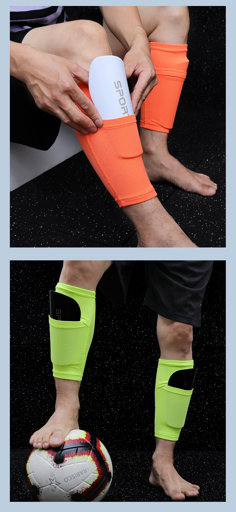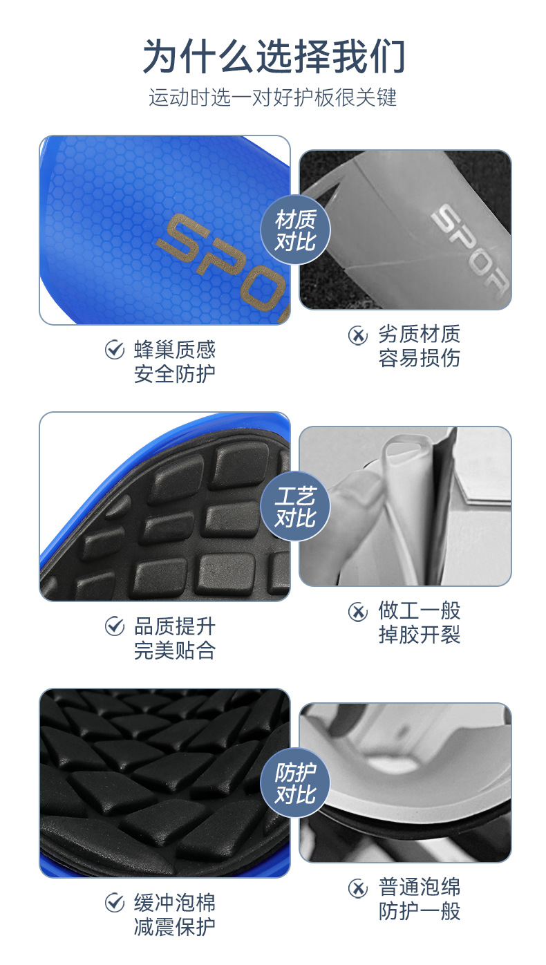 Protector de pierna de fútbol de panal transfronterizo, inserto fijo engrosado, transpirable, inserto de rodilla para correr, espinillas para hombres