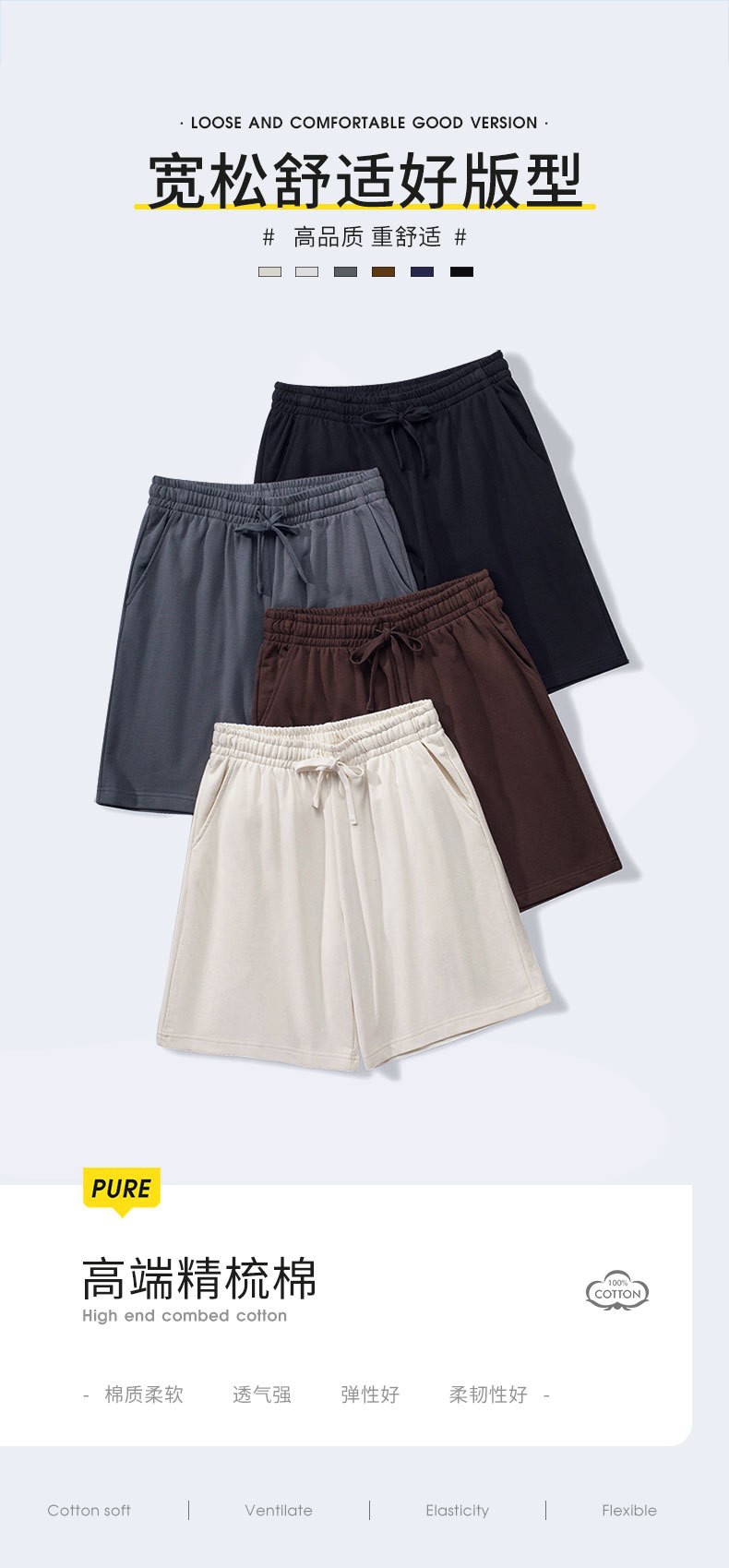 Pantalones cortos de cinco puntos, pantalones cortos de punto de algodón peinado de 300g para hombres y mujeres, pantalones casuales deportivos transpirables de verano, China y Alemania BYB5111