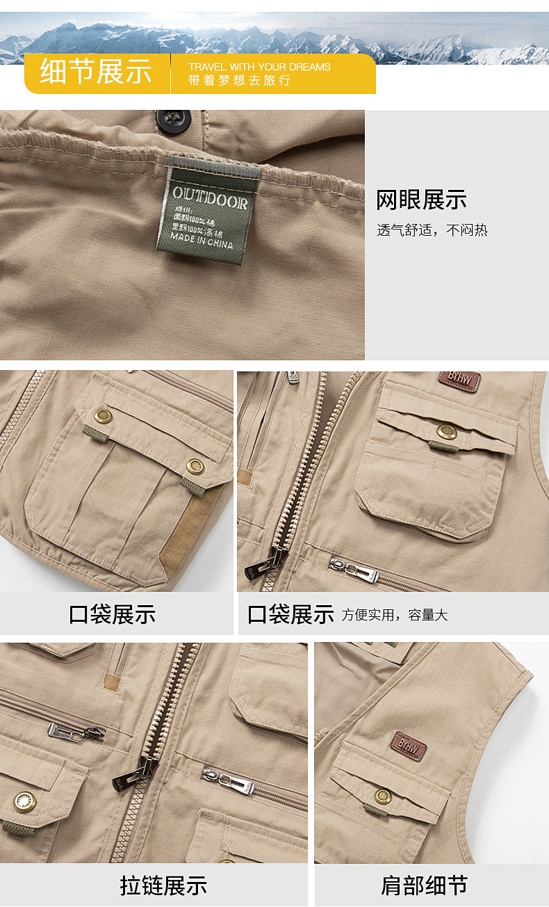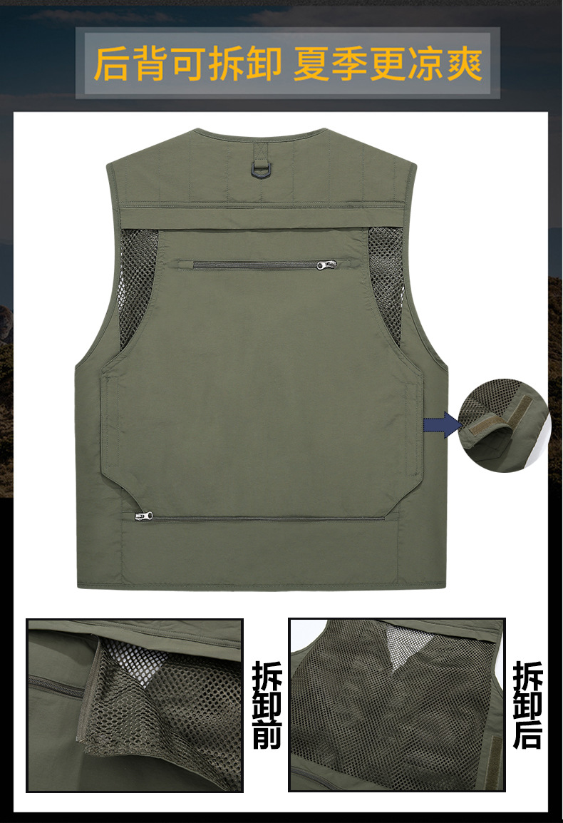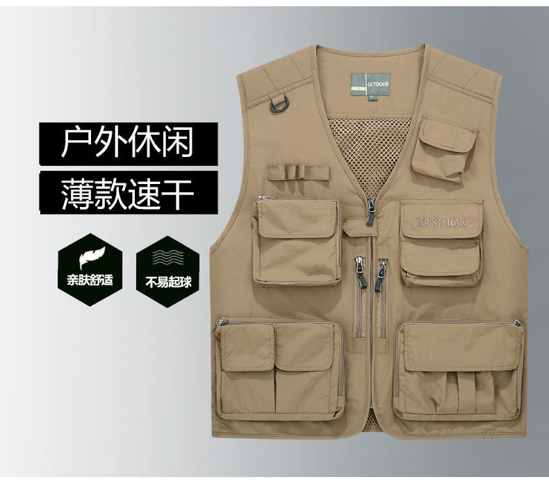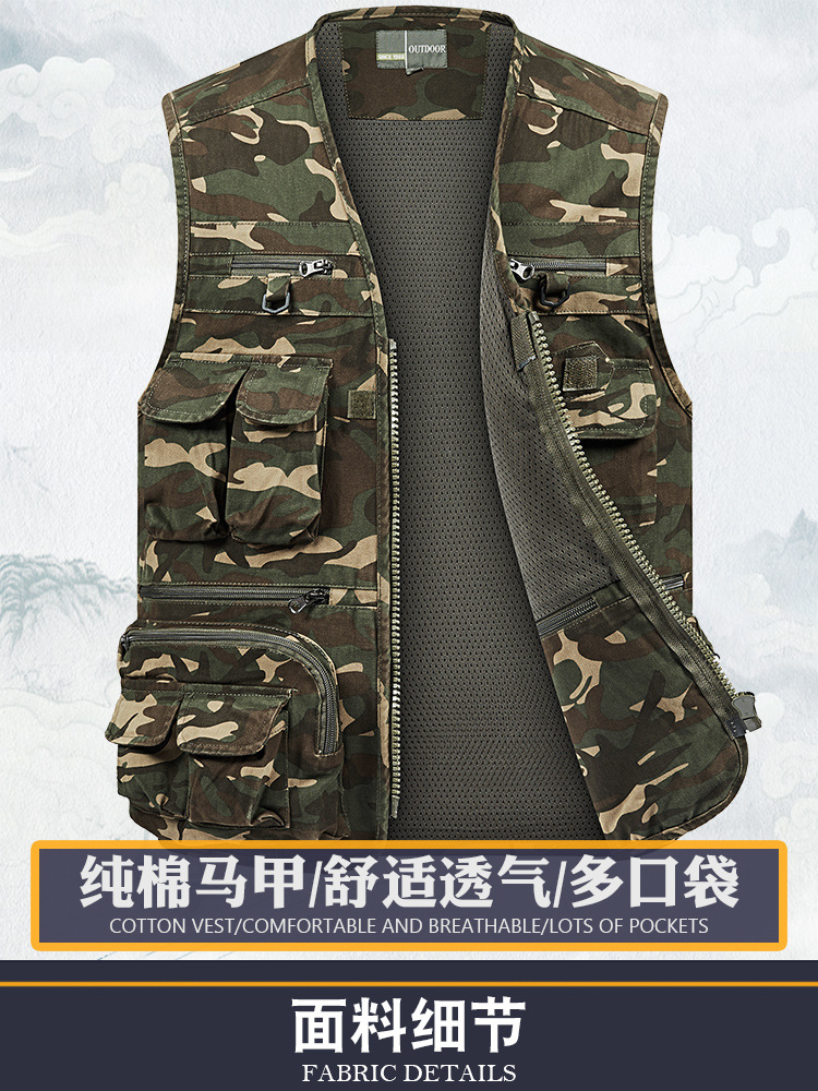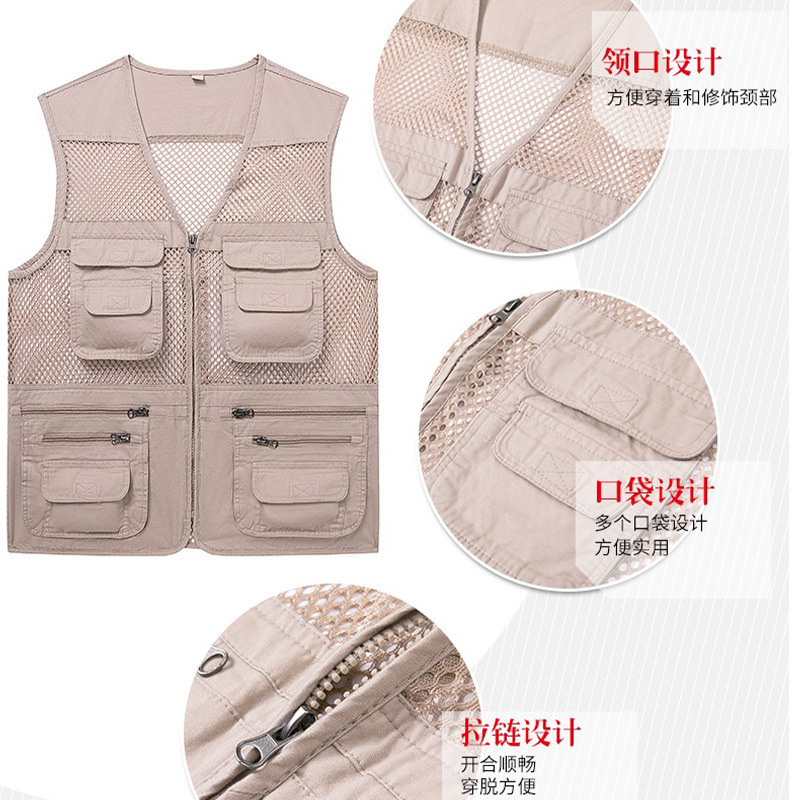 Logotipo impreso personalizado fotógrafo reportero pesca ropa de trabajo Chaleco de malla de algodón camuflaje multi-Bolsillo publicidad ropa de trabajo
